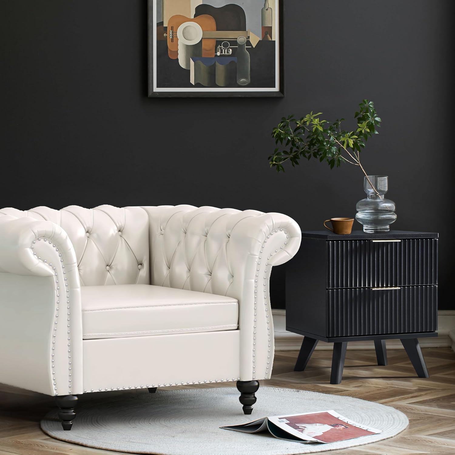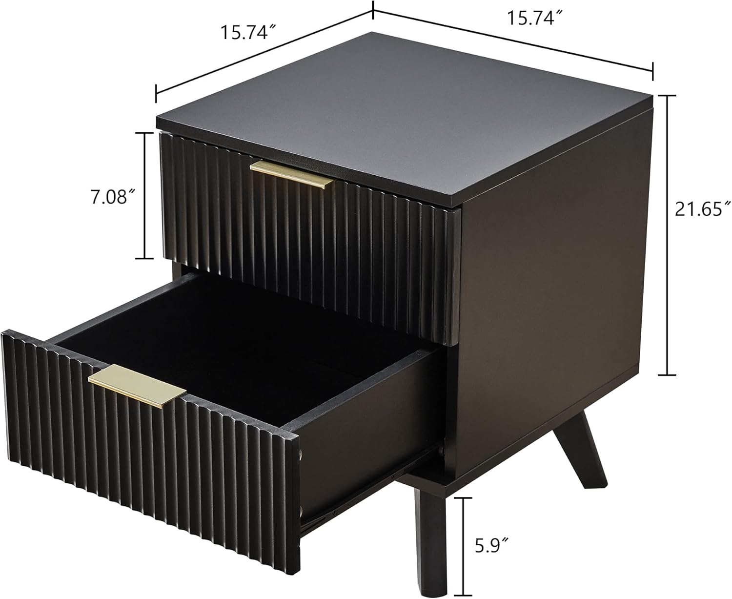 Fluted Nightstand, Mid Century Modern 2 Drawer Bedside Table for Bedroom, Small Dresser Night Stand Side Table End Tables with Wood Drawer Storage for Bedroom Closet(Black)