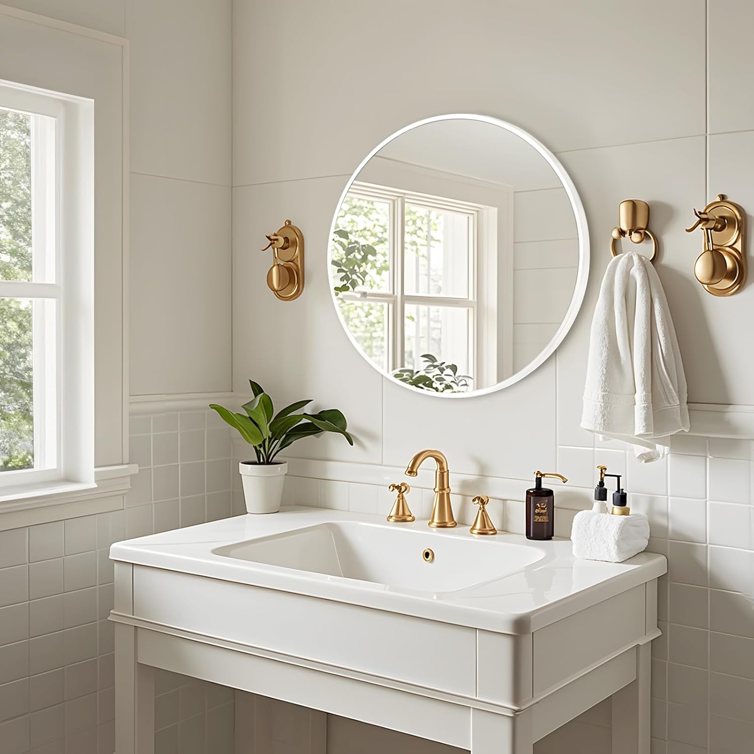 - Perfect Fit Interior Design - Great value and an excellent addition to your guest bathroom, which goes well with country chic inspired guest bathroom. And the simple round mirror is perfect fit for the entry way, bedroom, living room, baby nursery, office, which is a good wall decoration