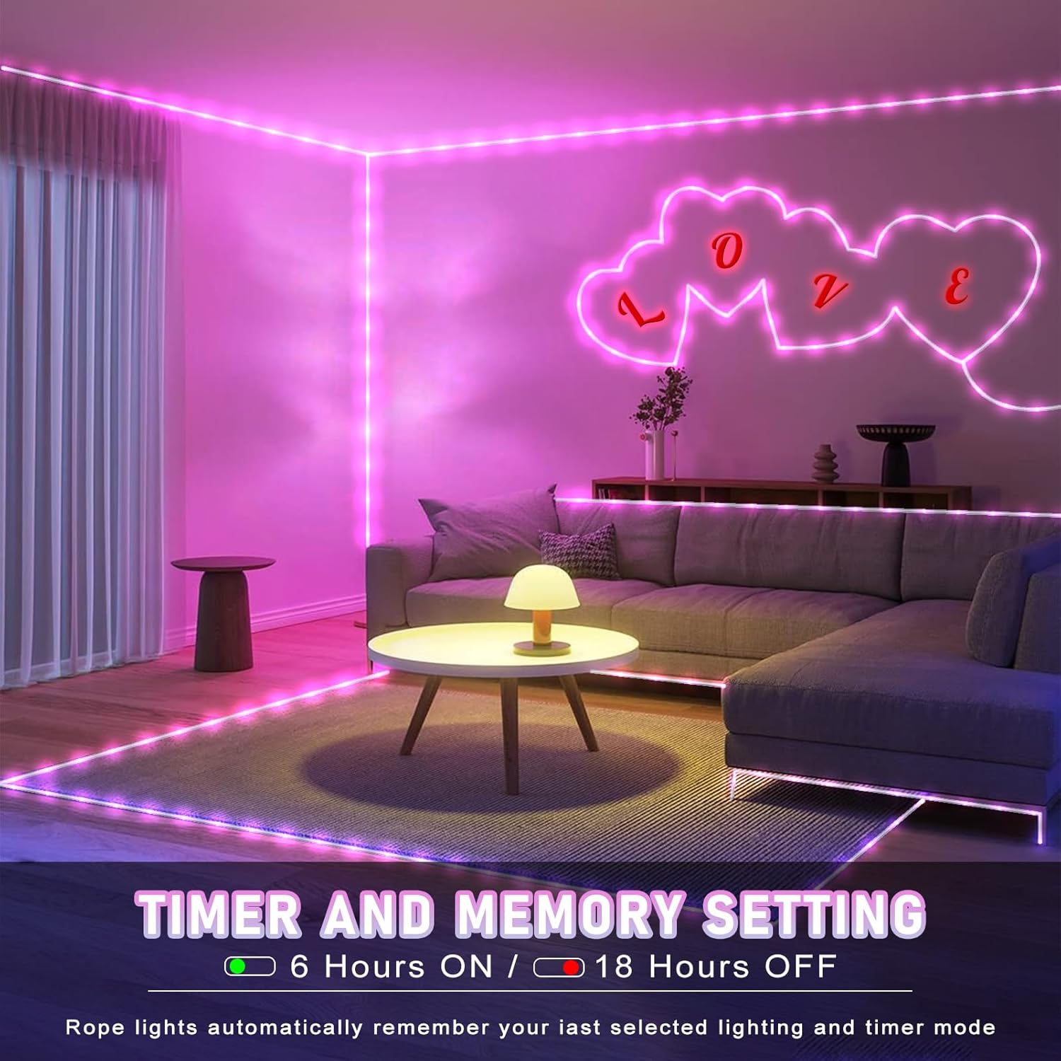 • 【Connectable Outdoor Rope Lights】- Our upgraded rope lights feature has 100ft lighting length, 6.6ft lead wire, total 106.6ft length. And the spacing between each LED bead is 4 inches, the light is bright but not harsh. The rope lights indoor can be connected end to end for up to 4 sets to illuminate your home and create a warm and romantic atmosphere!