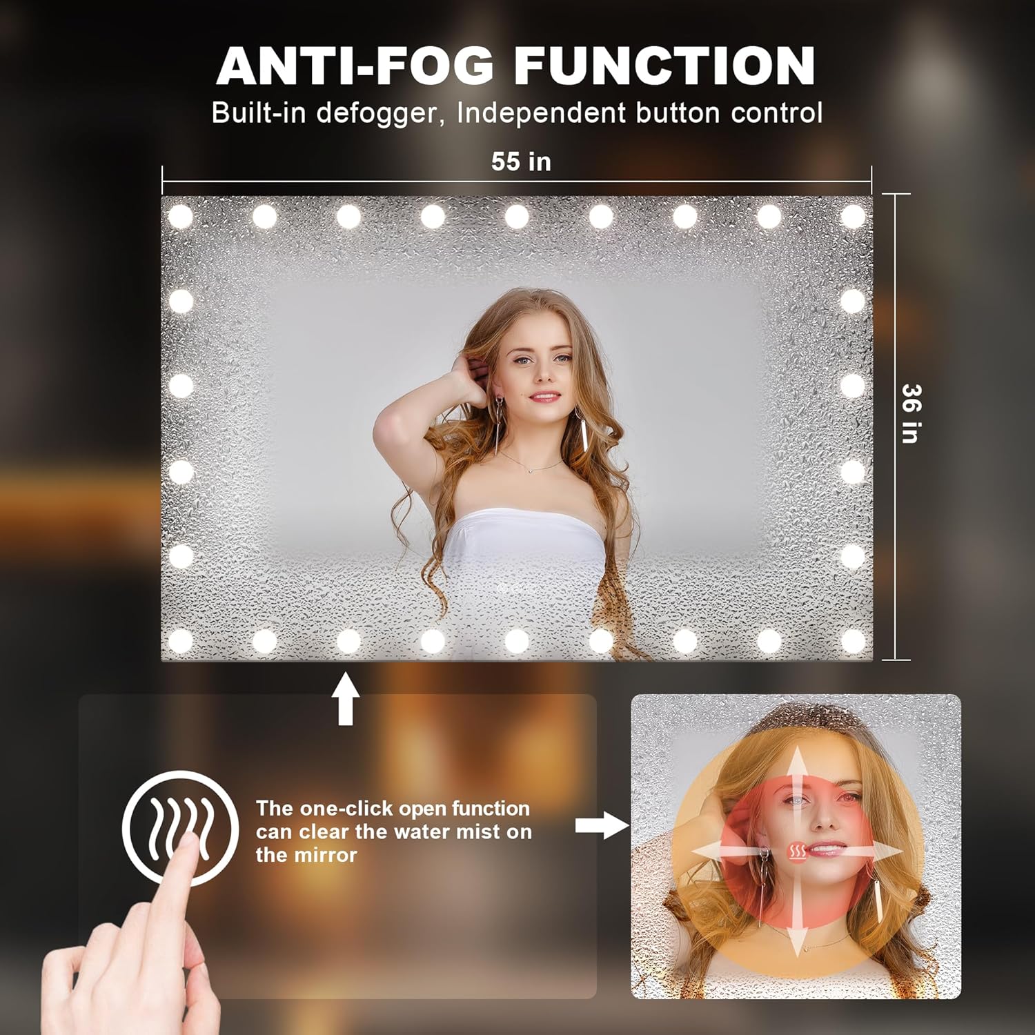 - 【Upgraded Anti-Fog & Smart Touch Screen】 Our bathroom mirror features an enhanced anti-fog function with a large heating film for faster fog removal, ensuring a clear reflection after your shower. The smart touch screen allows easy control of lights, color modes, and brightness, offering a sleek and convenient experience.