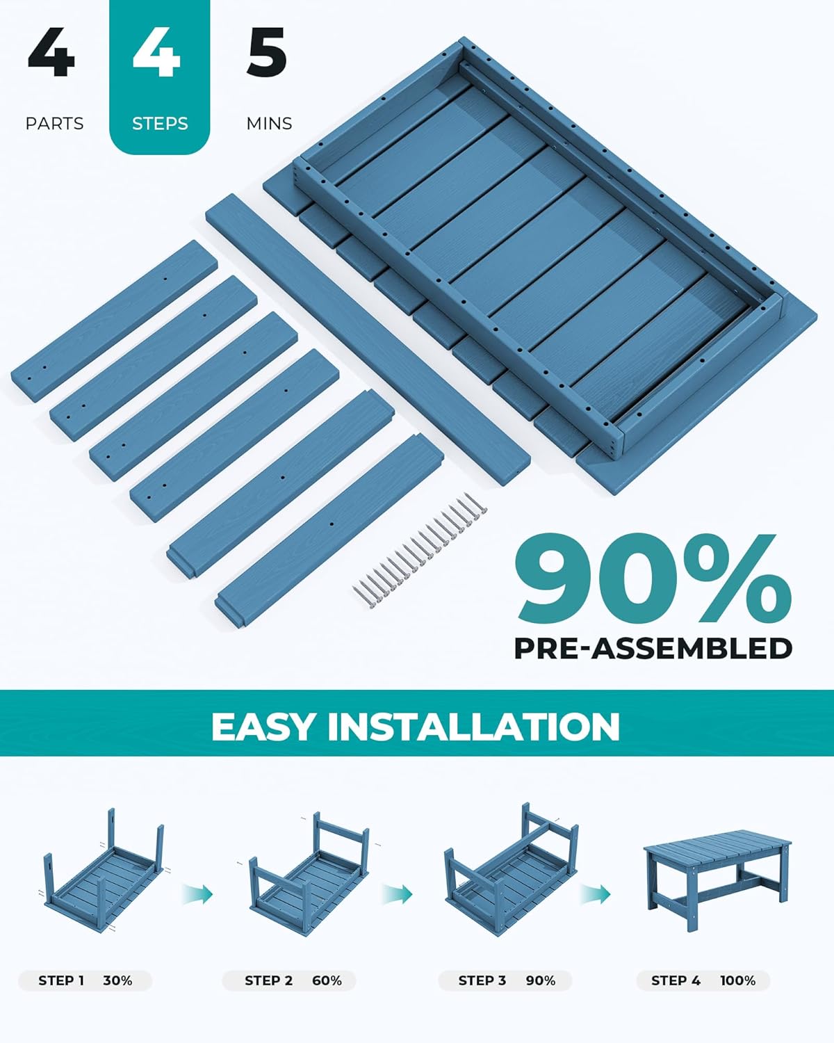 - 90% Pre-Assembled: Enjoy easy assembly with the 90% pre-assembled SERWALL rectangle coffee table. Simply follow the included instructions and use the provided hardware for a quick and hassle-free setup. only need 4 steps, 5 minutes to complete installation, and you'll have a beautiful and functional coffee table for your outdoor space.