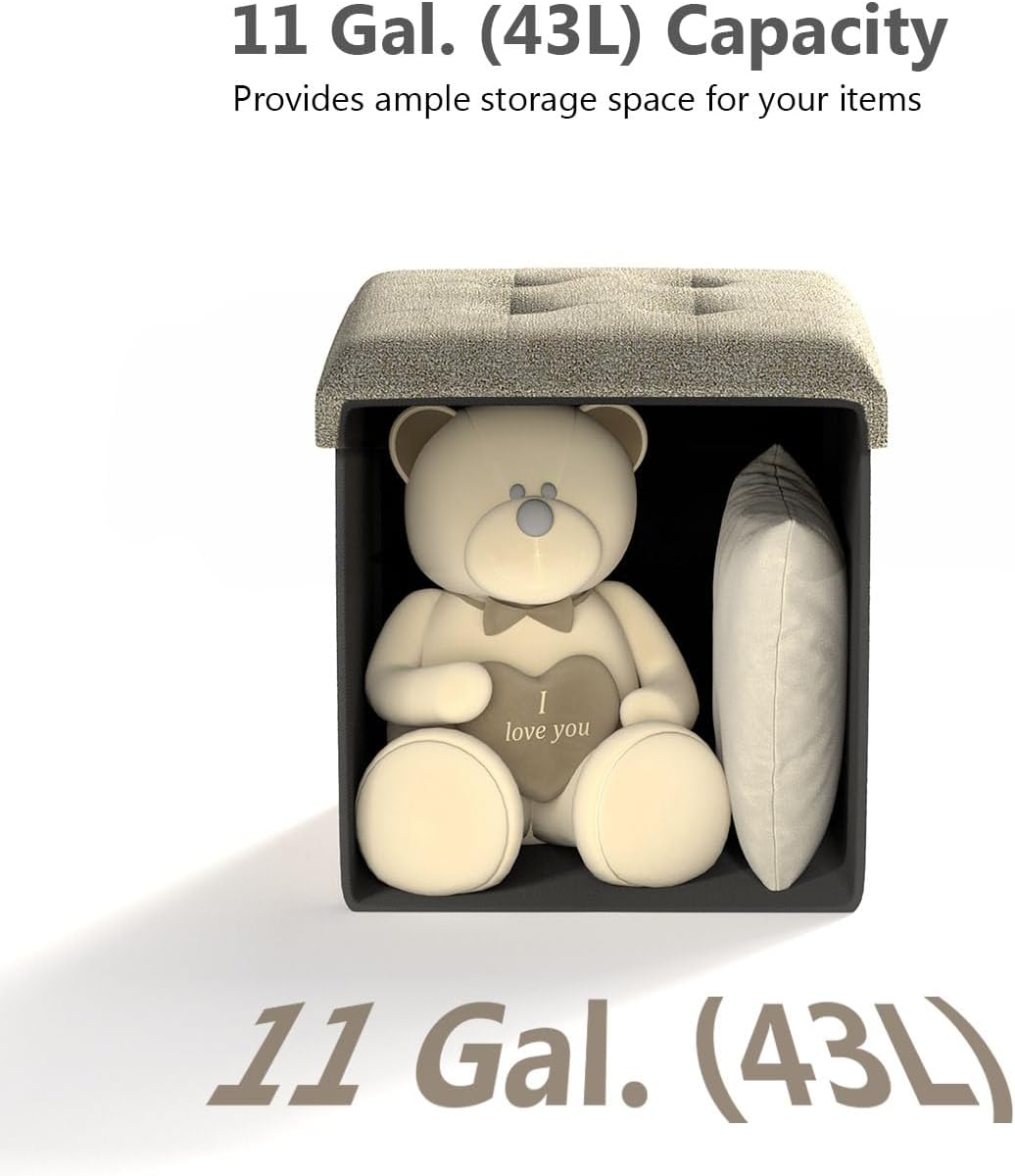 - [Plenty of Storage Space] This folding ottoman, sized 15”D x 15”W x 15”H (38 x 38 x 38 cm) with a total capacity of 11 gallons, can be used to neatly organize your bed sheets, pillows, blankets, magazines, and more