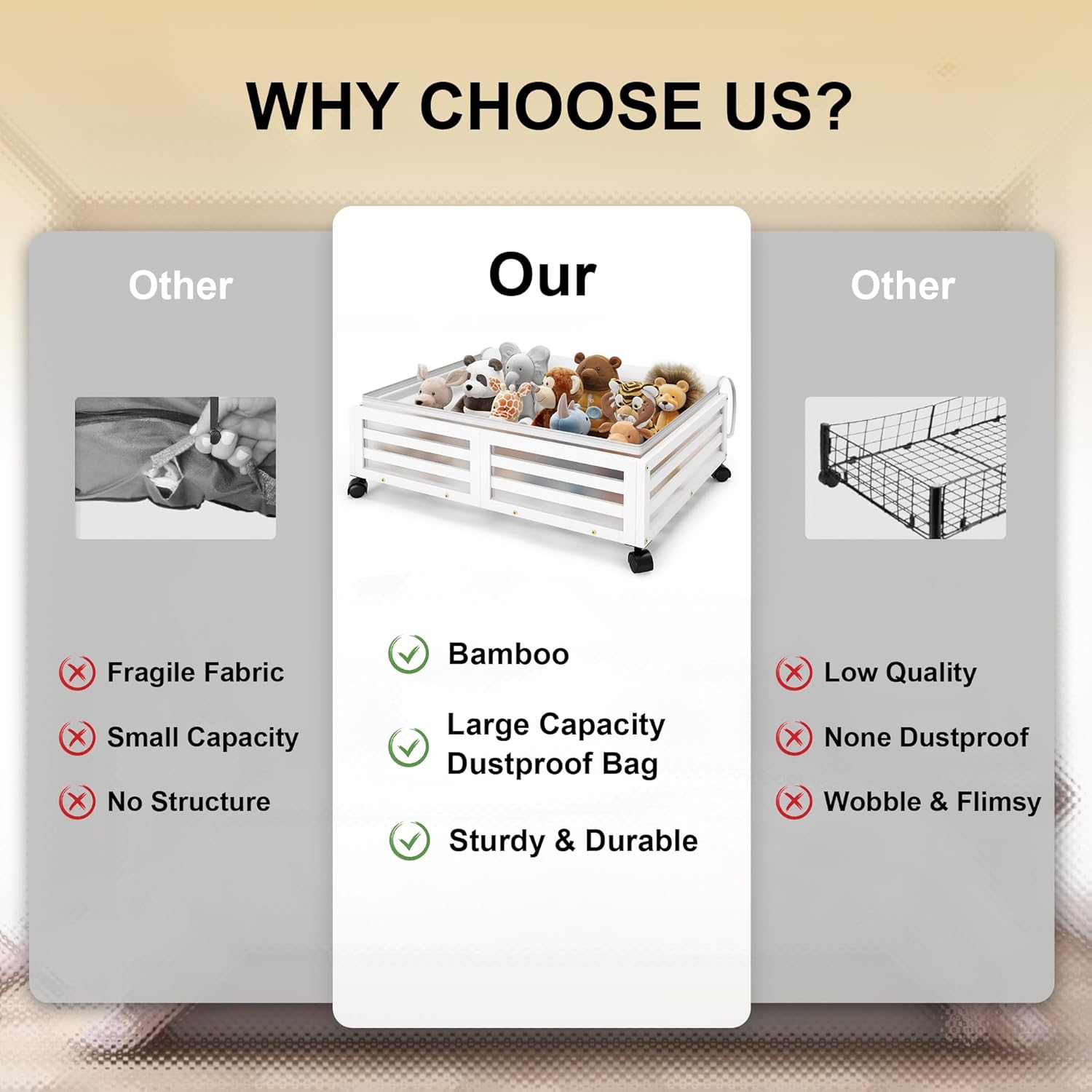 - 【Sturdy & Durable】Made from 100% natural bamboo; supports up to 120 lbs; includes a dust-proof bag for seasonal clothing and essentials