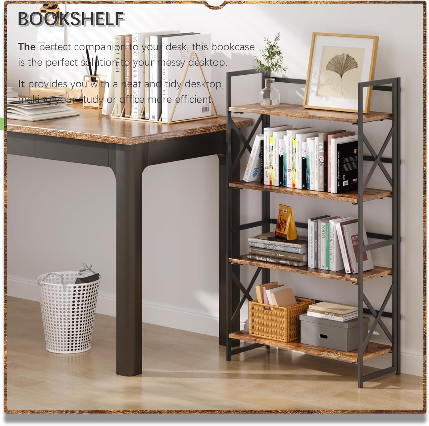 - ćSimplicity And Practical Folding BookcasećIt is a industrial style design with simplicity and retro, which can not only make your room in good order, but also occupy few space. You can put it in any space of your home, such as living room, bedroom, corridor, kitchen, balcony, etc