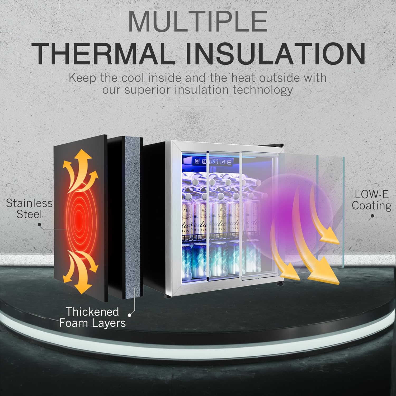 • [Refrigeration & Cooling Storage 2-in-1] I wanted to let you know that this wine cooler is pretty cool! It uses advanced air cooling technology that allows for 360° full-angle recirculated air duct cooling, which means that everything inside gets cooled evenly. Pretty neat, huh? You'll also appreciate the beautiful glass door with a low-e coating and a high density door seal that prevents cold air from escaping while blocking warm air from entering.