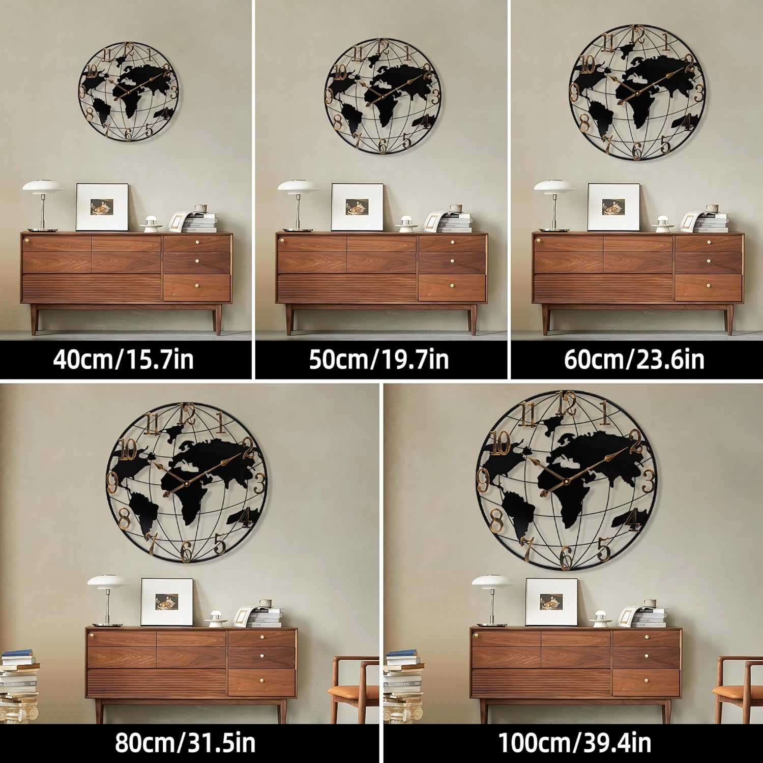 - Perfect for Living Room Decor - This world map wall clock is a breathtaking centerpiece that captivates guests. With vintage gold Arabic Numerals for enhanced readability, it makes an exquisite addition above fireplaces or in living rooms, igniting conversations and admiration. Ideal for elevating the decor in your living room, kitchen, dining area, or bedroom, it stands out as a striking focal point that attracts comments from visitors