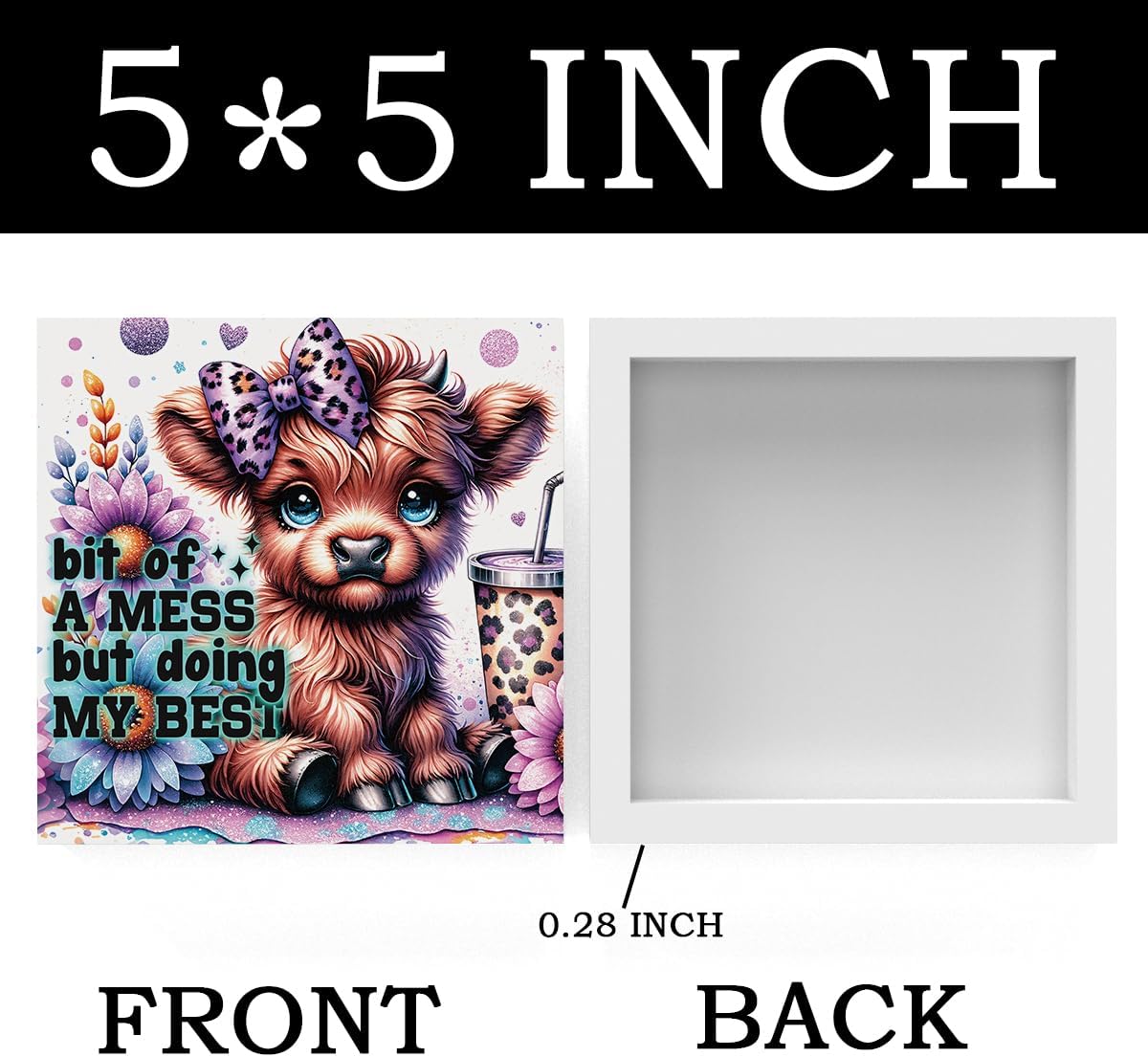 Highland Cow Baby Decor, Highland Cow Sunflower Decor, Highland Cow Gifts for women, Highland Cow Nursery Decor, Wooden Box Decor Sign for Home Farmhouse Office Living Room Table Shelf Tiered