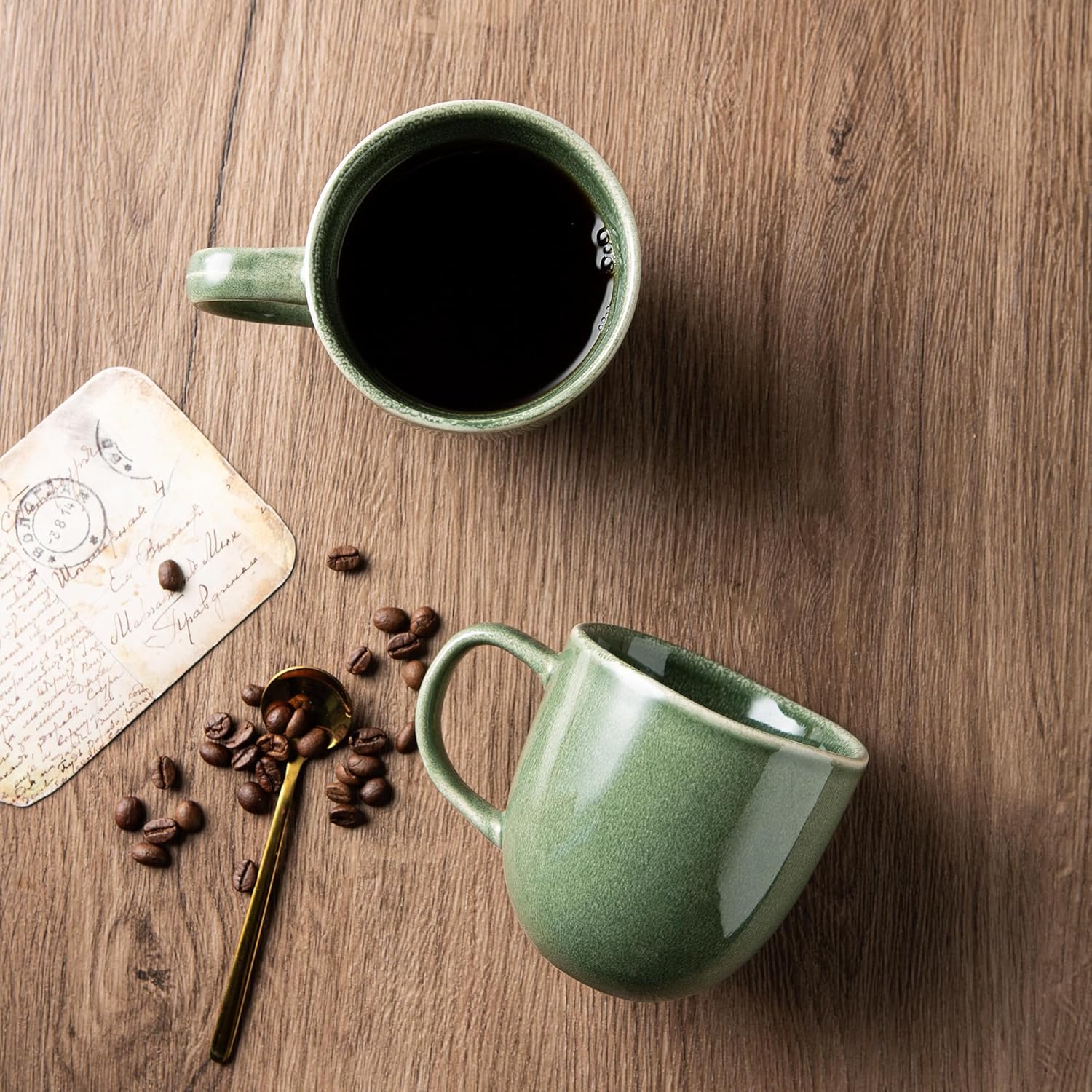 AmorArc 12oz Coffee Mugs, Ceramic Coffee Mugs set of 6 for Man, Woman, Dad, Mom, Modern Coffee Mugs with handle for Latte/Cappuccino/Milk/Cocoa. Dishwasher&Microwave Safe, Jade Green