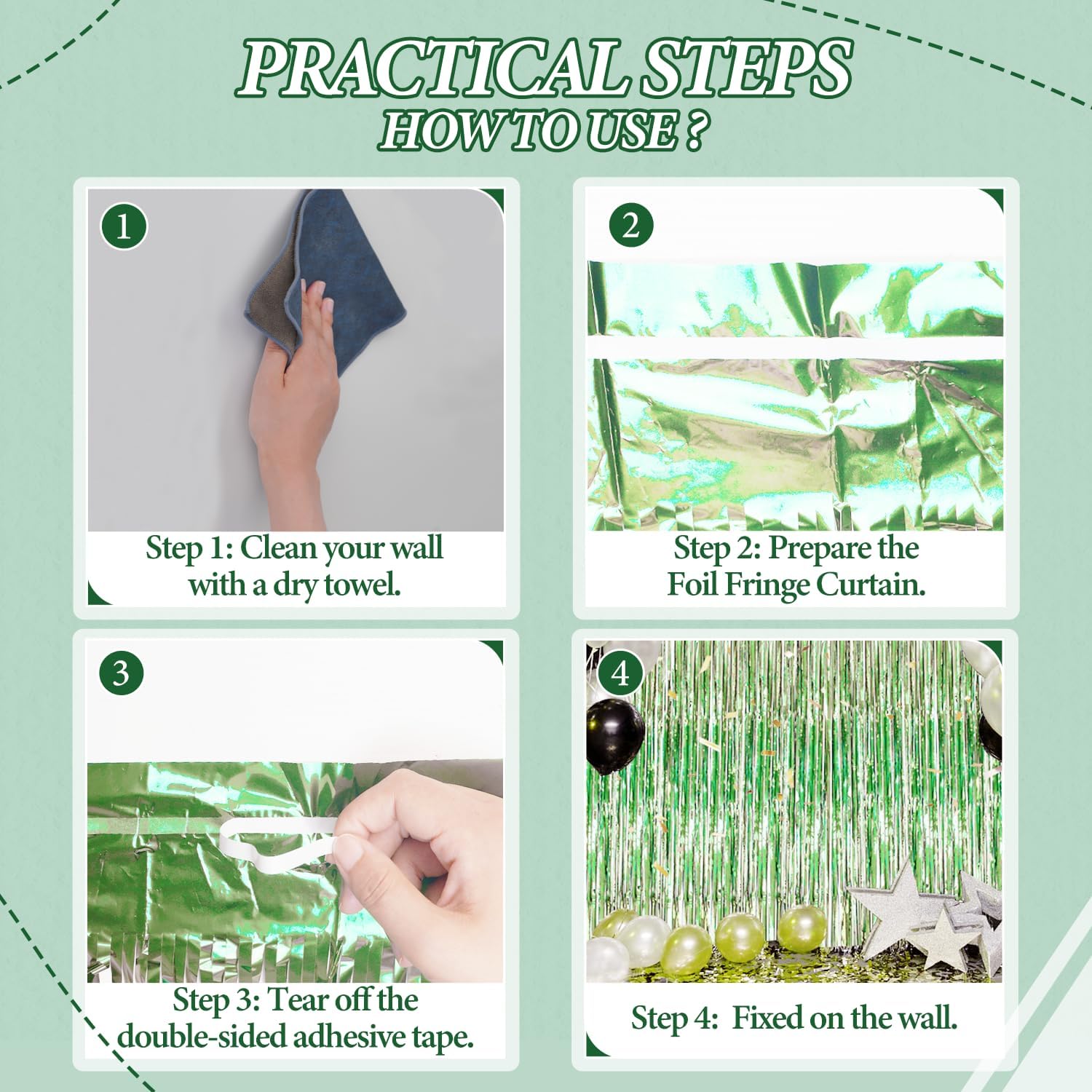 3 Pack Foil Fringe Backdrop - Light Green Shiny Tinsel Curtains for Party Decoration/Photo Booth Props - 3.3x8.2 FT Metallic Foil Backdrop for Birthday, Wedding, Graduation, Christmas