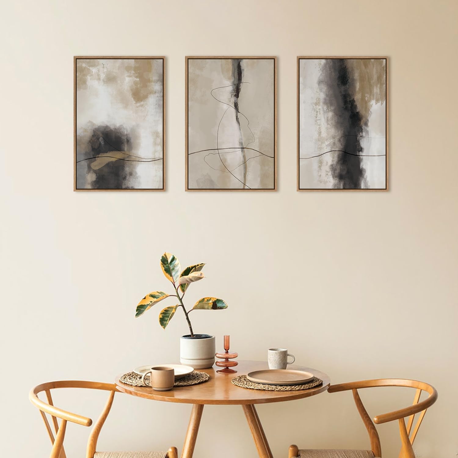 - 【Multi-Scene Decoration】This framed canvas abstract wall art set can be easily matched with different home styles to create an artistic atmosphere for any space such as bedroom, living room, study, office, or other occasions. Hang it on the wall to break the emptiness and dullness of the wall, add a few artistic touches to your home, and add a unique personal style to your home decor.