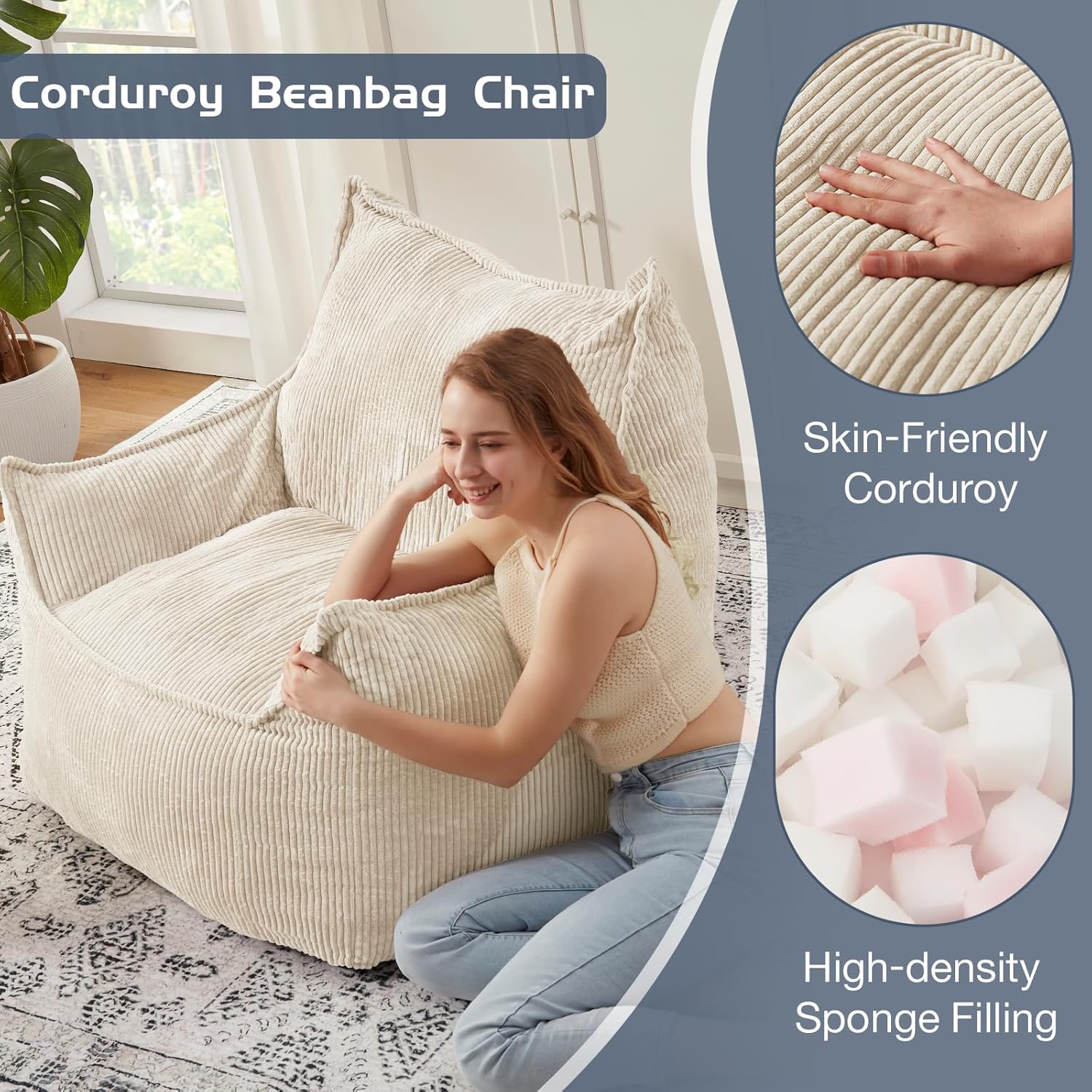 - 【MULTIPLE USAGE】: Corduroy bean bag sofa chair will blend into any home decor styles, and suitable for various rooms, perfect for bedroom, living room, game room, study room, office or apartment. Providing comfort and support while reading, playing, gaming, sleeping, watching TV, etc.
