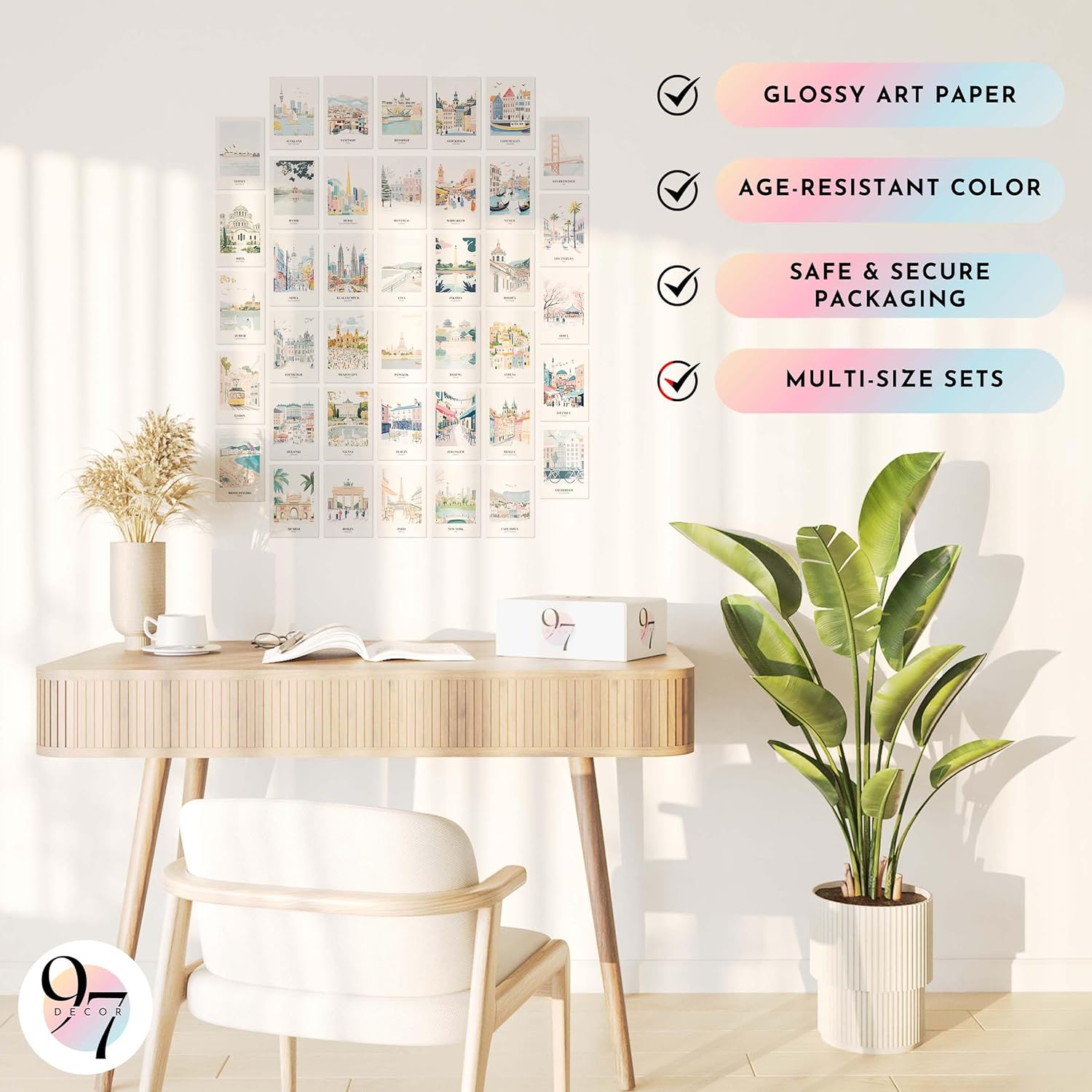 97 DECOR Vintage Travel Decor Posters - World Travel Wall Art Prints, Retro Popular Cities Photo Collage Kit, Trendy City Landscape Aesthetic Pictures for Teen Dorm Bedroom Decorations (40 Pcs, 4"x6")