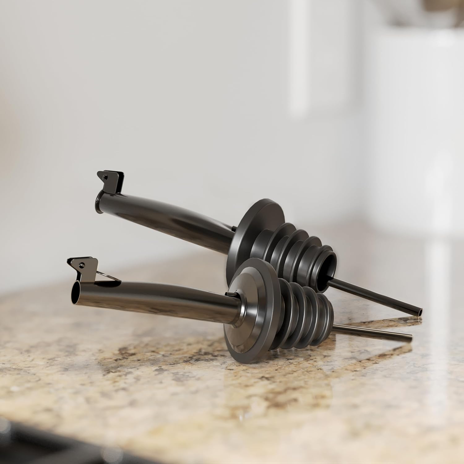 New England Stories Kitchen Cooking Oil Dispenser Set, Olive Oil and Vinegar Bottles, Soy Sauce Dispenser - 2 Pieces, Black, Durable & Stylish Design