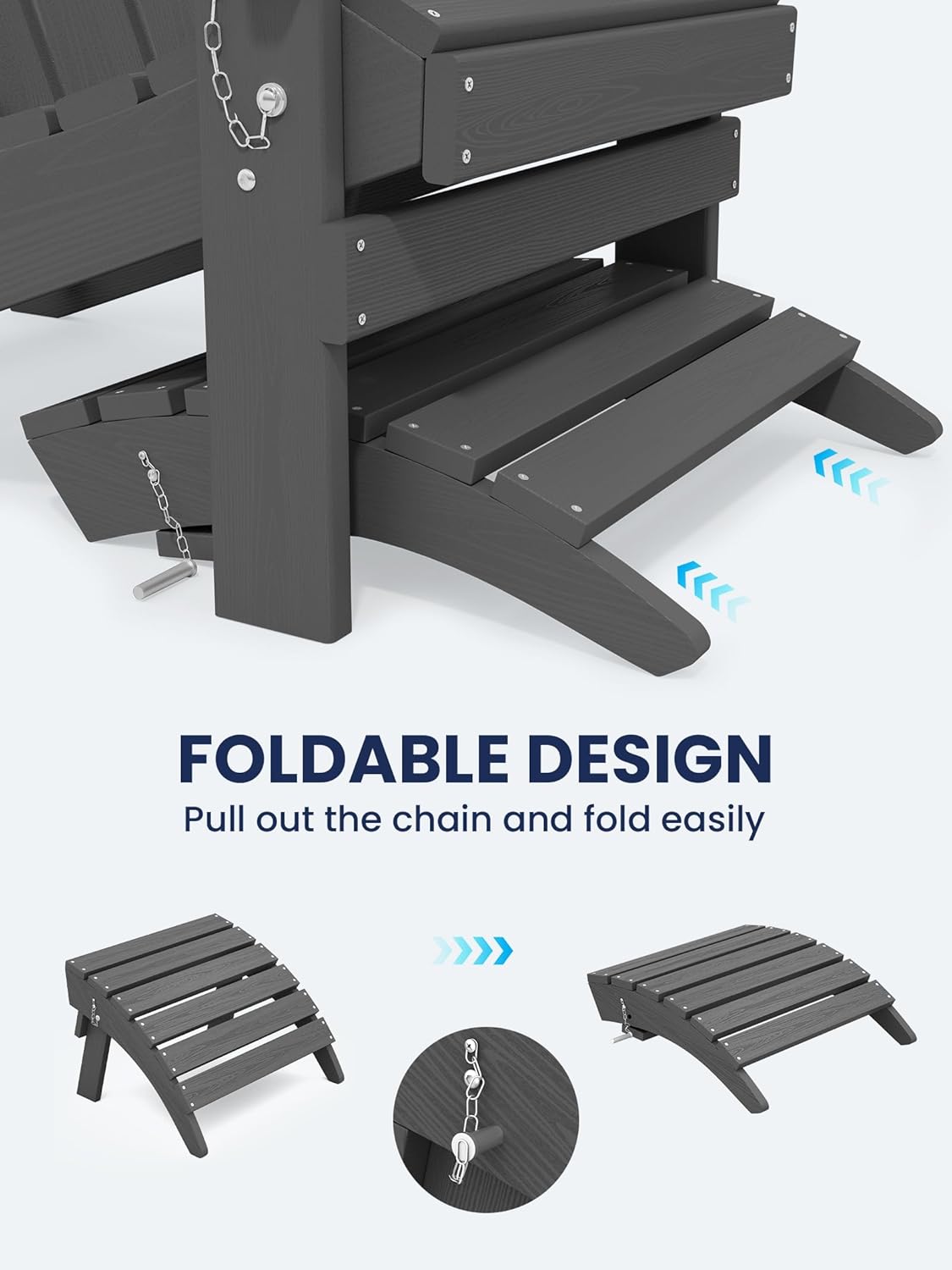 - [Space-Saving Design]: The KINGYES Folding Adirondack Ottoman is designed with a foldable feature, making it compact and easy to store under your chair when not in use. This space-saving innovation is perfect for any outdoor enthusiast.