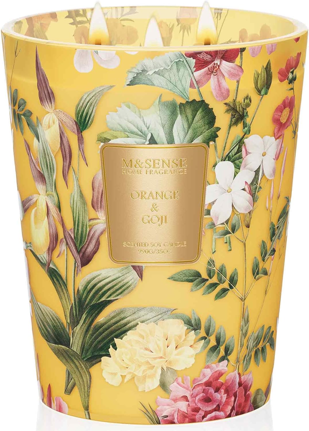 M&SENSE Extra Large Candle Orange Goji Scented, 3-Wick 35oz 150H Long Lasting, Natural Soy Wax Aromatherapy Candle for Stress Relief, Home Fragrance Housewarming Gifts Candle for Home Decor