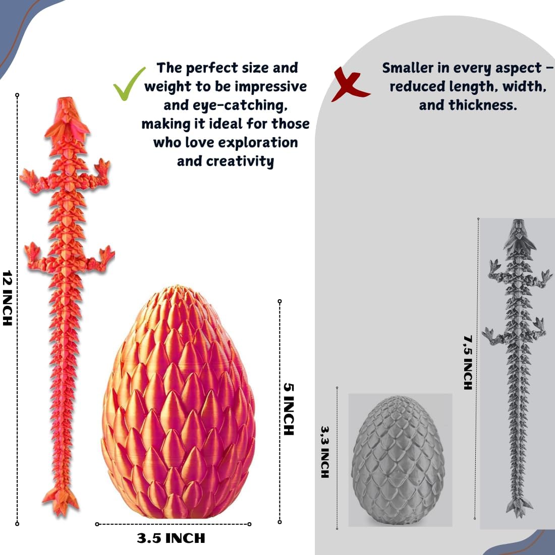 - 【PERFECT SIZE】: The 5.1-inch egg holds a majestic 12-inch dragon inside. Its size fits perfectly in your hand, ideal for display and interactive play. Dragon printed under authorized commercial license. Licenced Reseller of ZDeanzo's 3D Designs: phuc nguyen