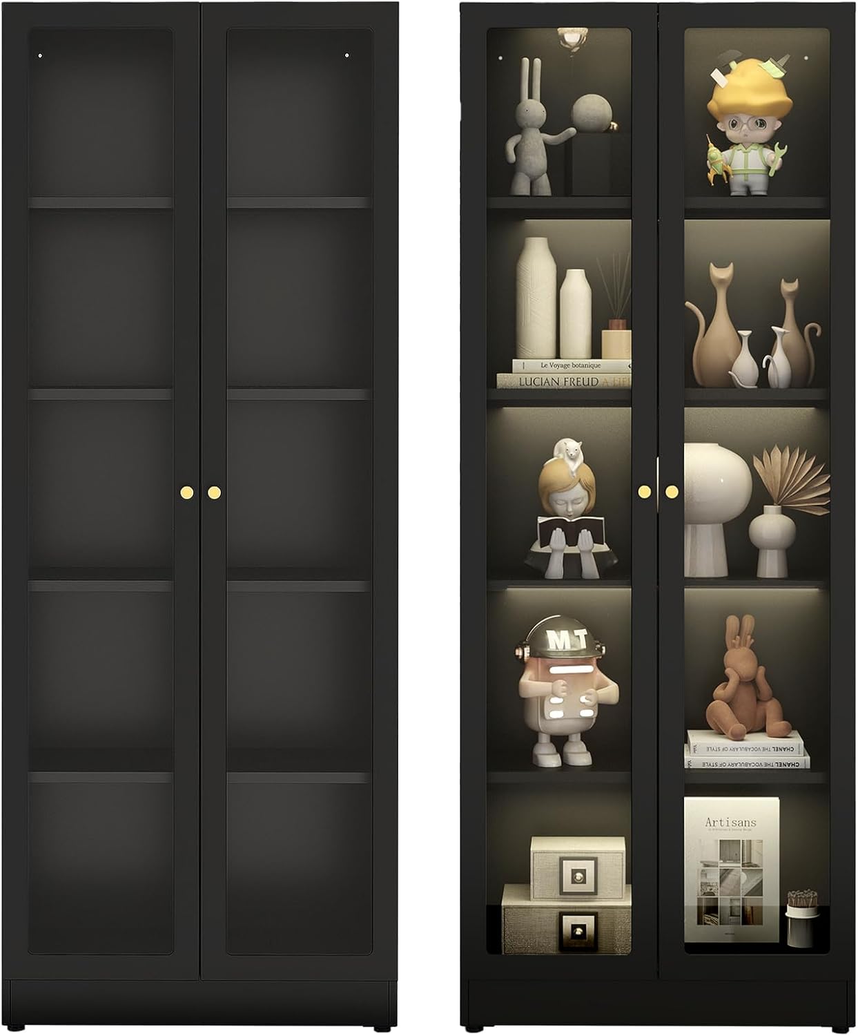 - Storage Cabinets for Multiple Purposesļ¼A nice dust proof display cabinet to store a variety of books, collectibles, dishes and more. This steel storage cabinet can be used as a display cabinet for curios, books, artwork in your living room. It can also be used as a glass display cabinet, bookshelf, media cabinet, miscellaneous cabinet in office, bathroom, kitchen, etc. With local warehouses in USA, we are able to provide fast deliveries.