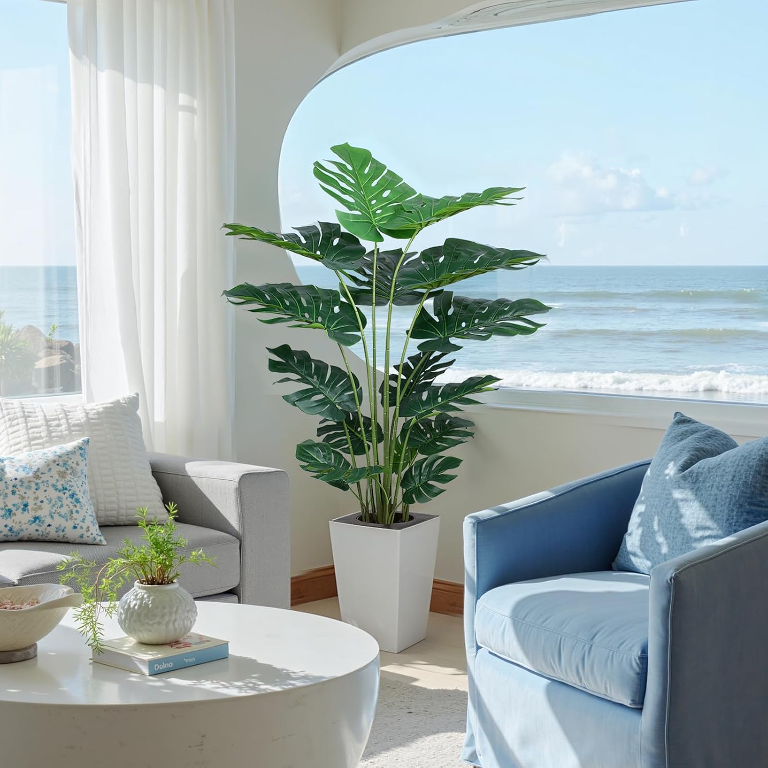 - ćSuitable for any Spaceć: Standing at 5 feet tall, this fake monstera plant creates a dramatic focal point without overwhelming rooms. Its size makes it a great fit for Home Office Decor Indoor Outdoor Housewarming Gift.