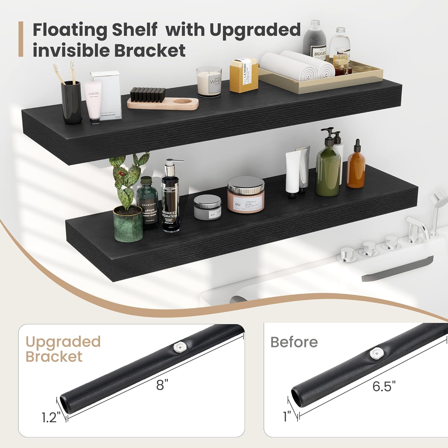 - Sturdy and Effortless Assembly- Includes all necessary hardware to make these floating shelves easy to assemble. We also provide you with detailed install instructions for you to install the shelves in a few minutes.