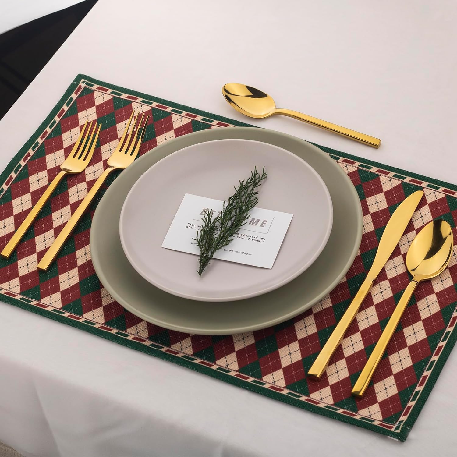 Alata Cube Gold 20-Piece Flatware Set, Forged Cutlery Set, Mirror Finish Silverware Service for 4, Stainless Steel Tableware with Square Handle for Home/Restaurant, Dishwasher Safe