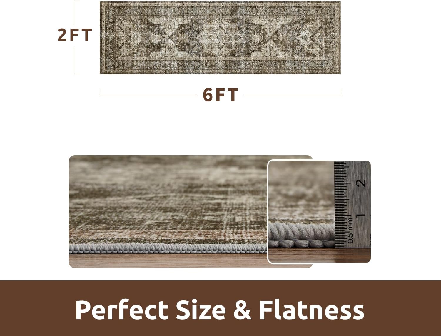 AMOAMI-2X6 Runner Rug-Washable Runners for Hallways-Soft Non Slip Bedside Rugs for Bedroom-Vintage Long Rug for Hallways Entryway Laundry Room Stair Kitchen Bathroom Light Brown/Coffee