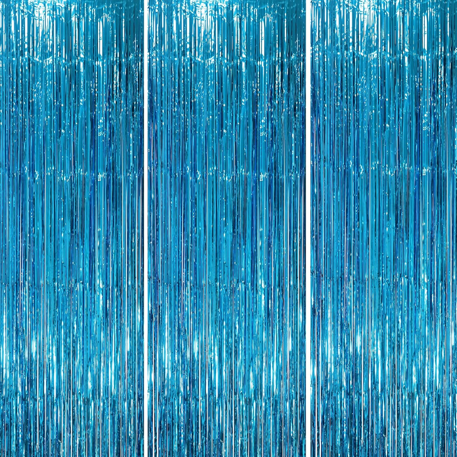 - Package Included: 3 packs of retro blue foil fringe curtains, the size of the foil curtain is 3.3*8.2ft. It's long enough to fit any occasion