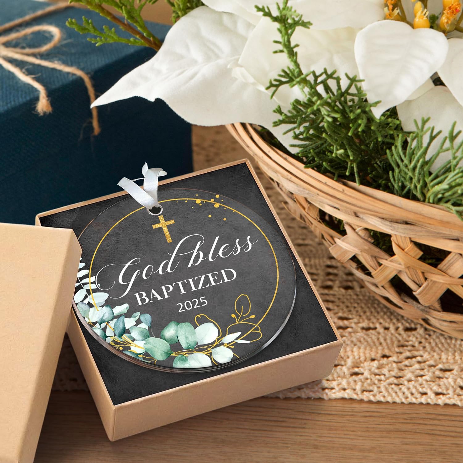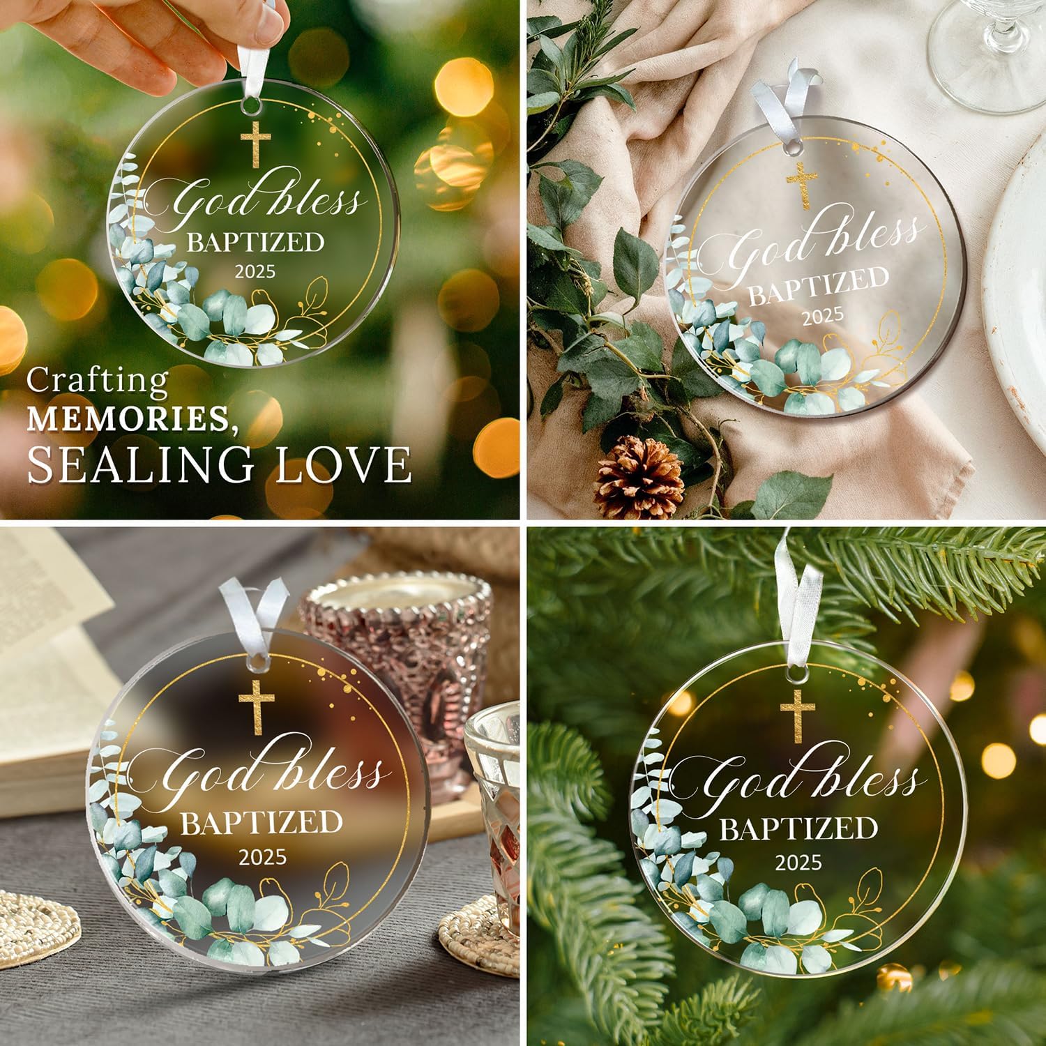 HEXMOZ God Bless Baptized Ornament 2025 - Christian Easter Baptism Gifts for Boys, Girls, Adults - Cross Christening Gift for Baby Boy Girl Godson Goddaughter - Acrylic Christmas Keepsake Decoration