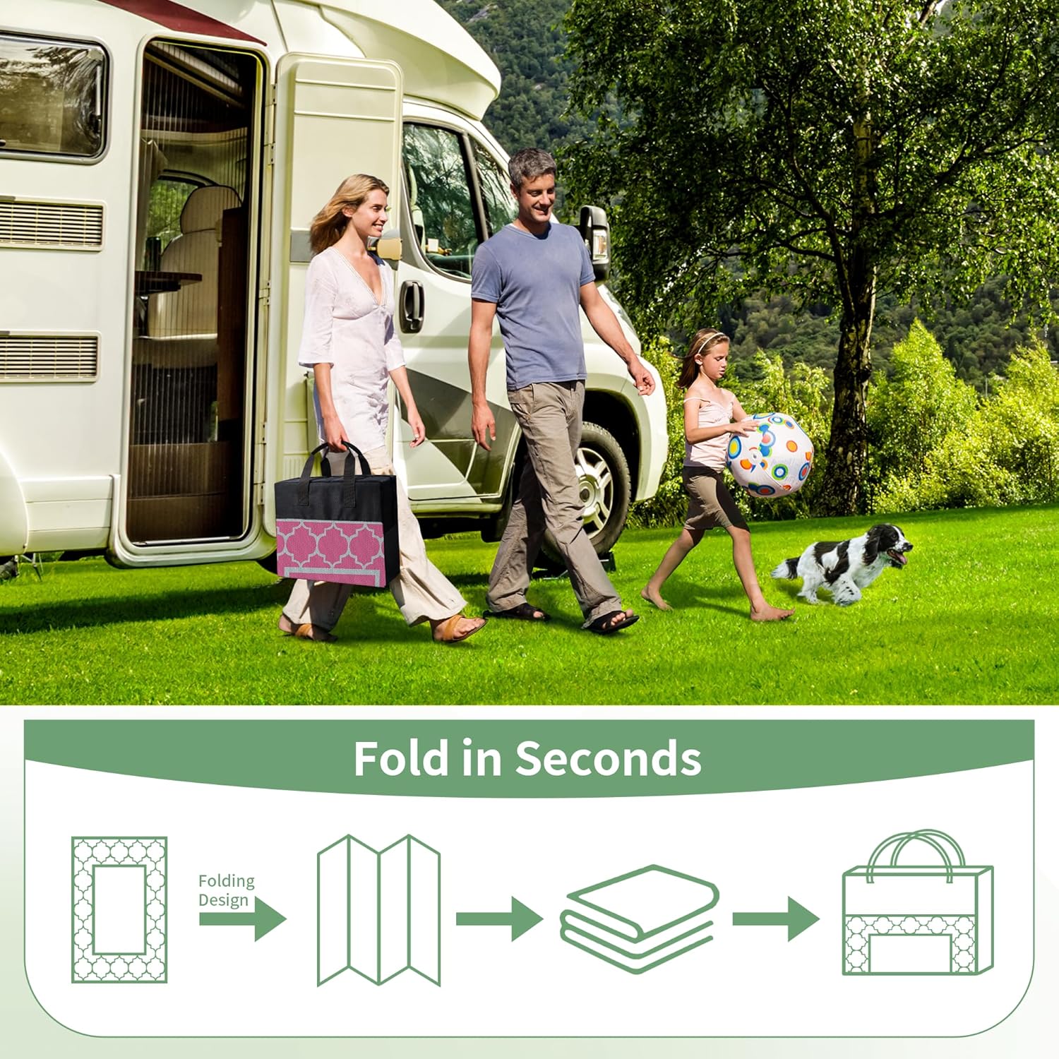 - Portable Outdoor Comfort:GENIMO's compact rectangular camping rug, available in various sizes (2.5'x8', 3'x5', 4'x6', 5'x8', 6'x9', 8' round, 10' round, 8'x10', 9'x12', 8'x16', 9'x18'), and ideal for all seasons, easily fits in your handbag. This waterproof rug, secured with stakes, transforms your outdoor space, ensuring a cozy spot for your camping essentials and a touch of home comfort in your rv essentials kit.Take it along for autumn adventures or add it to your fall decorations for home