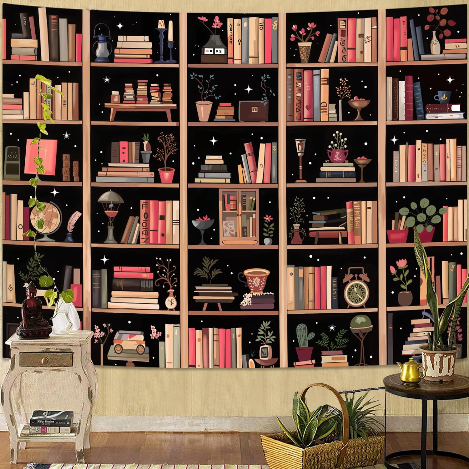 - Versatile Decor Piece: Whether you're decorating a modern loft, a minimalist apartment, or a contemporary home office, this modern bookshelf tapestry is the perfect choice. Its stylish design effortlessly enhances any space, adding a touch of sophistication and a literary vibe that complements modern decor trends
