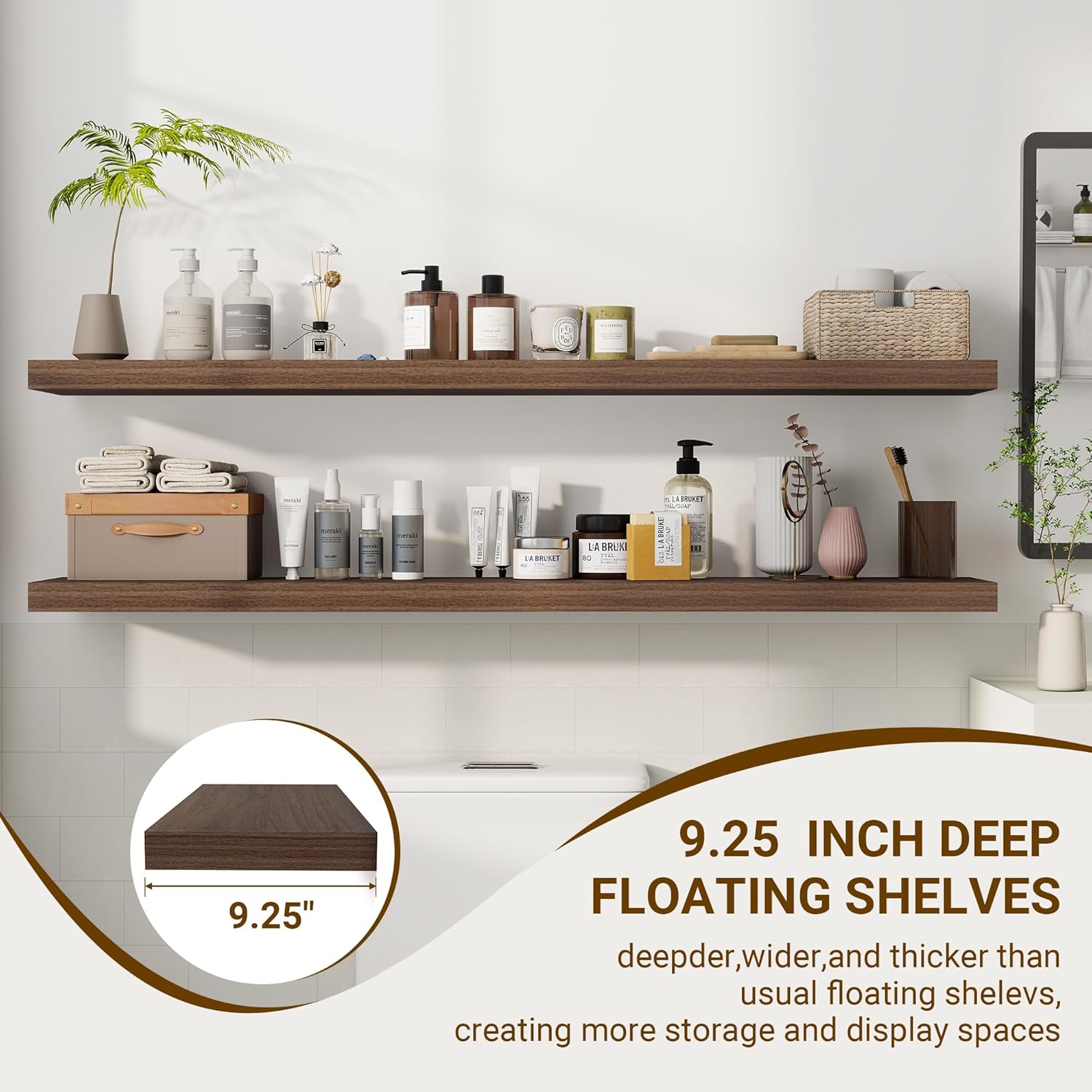 55 Inch Floating Shelves, 55"x9.25"x1.5" Inch Deep Floating Shelves for Wall, Wooden Shelves for Bathroom, Bedroom, Living Room, Walnut