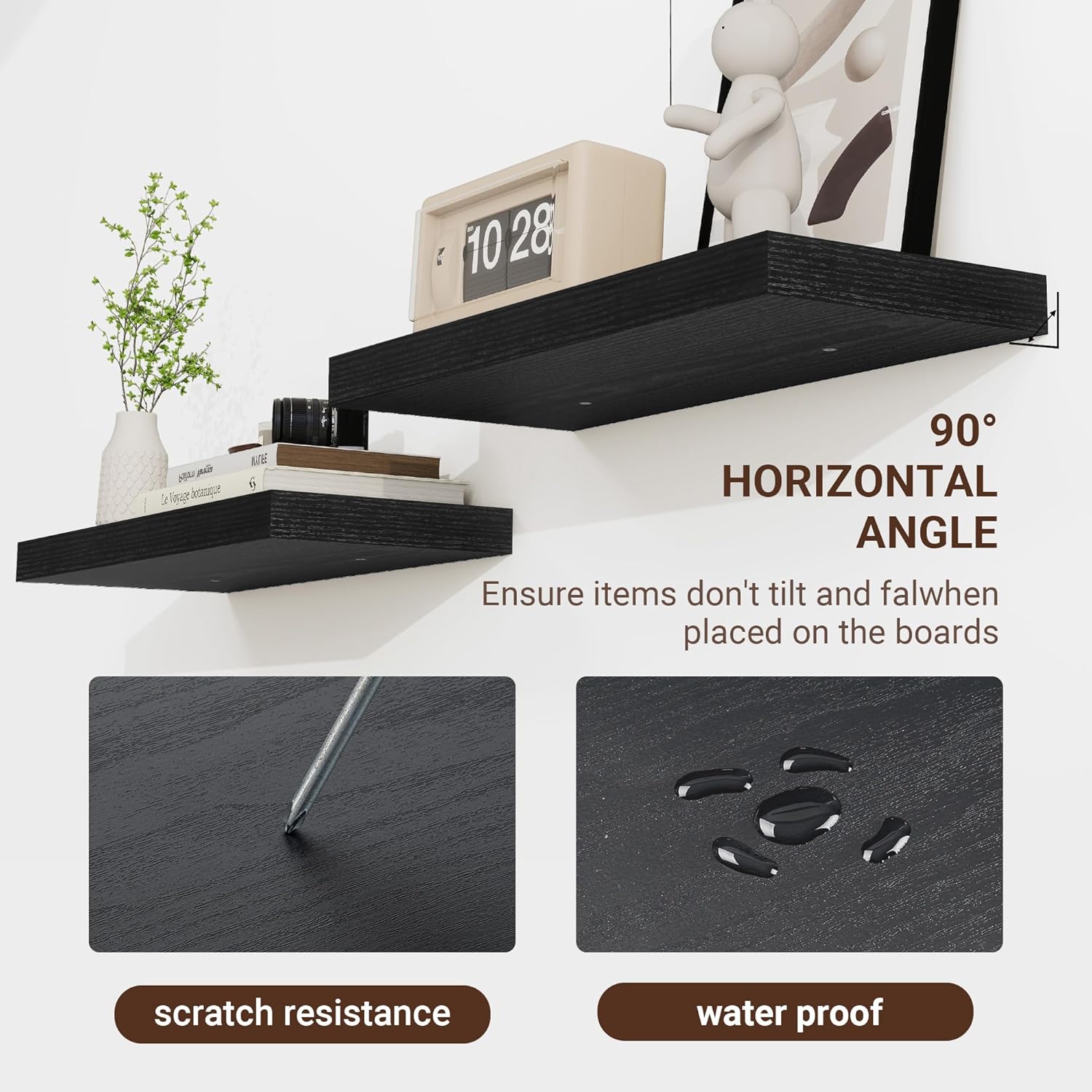 55 Inch Floating Shelves, 55"x9.25"x1.5" Inch Deep Floating Shelves for Wall, Wooden Shelves for Bathroom, Bedroom, Living Room, Black