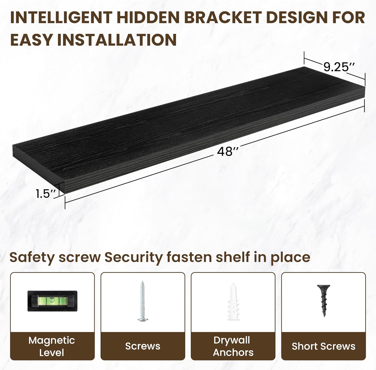 48 Inch Floating Shelves, 48"x9.25"x1.5" Inch Deep Floating Shelves for Wall, Wooden Shelves for Bathroom, Bedroom, Living Room, Black