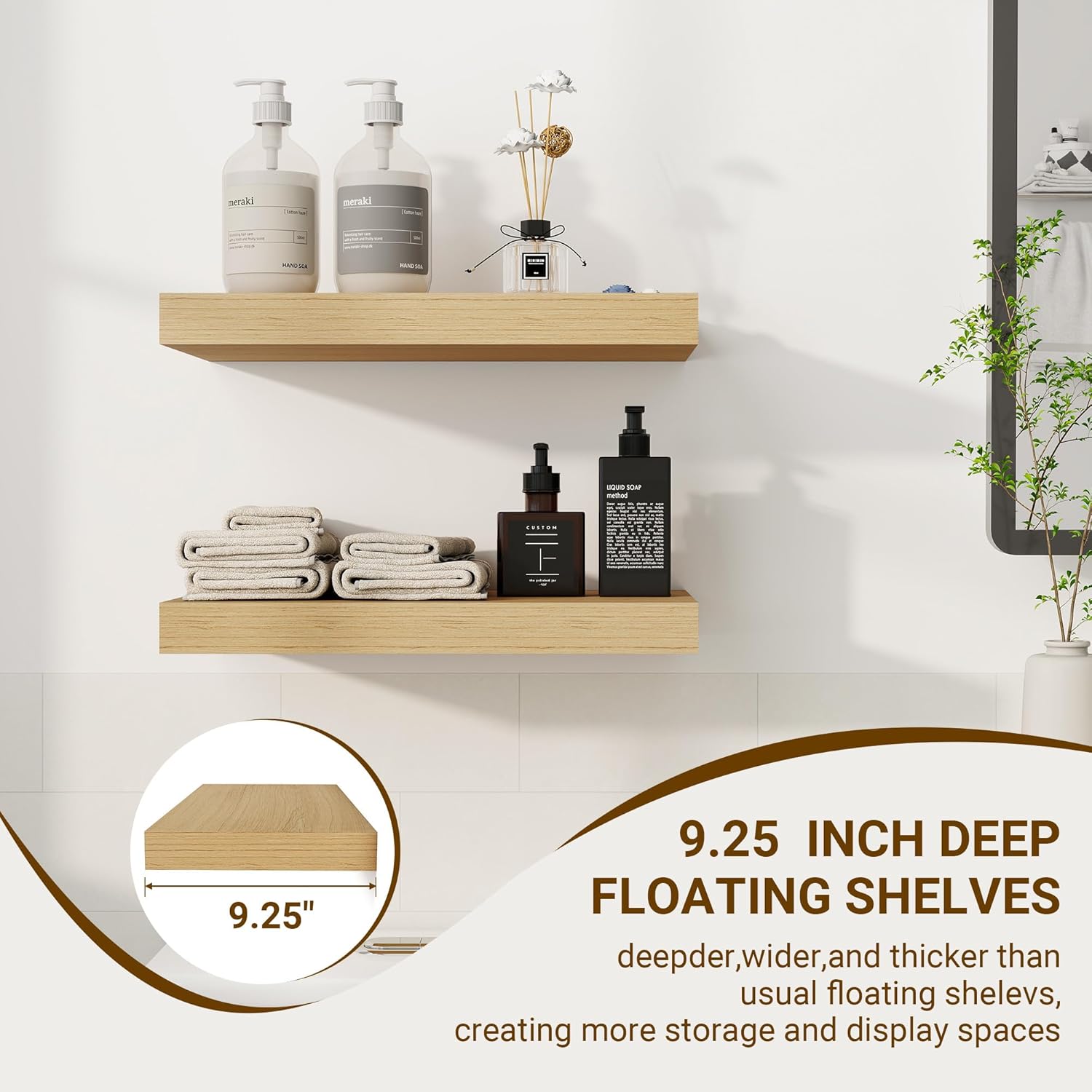 - 【Spacious and Versatile】 With an impressive depth of 9.25 inches and a thickness of 1.5 inches, these shelves provide ample space for a variety of items. Whether it's photos, books, DVDs, or decorative knickknacks, these shelves can handle it all, offering a practical yet stylish storage solution