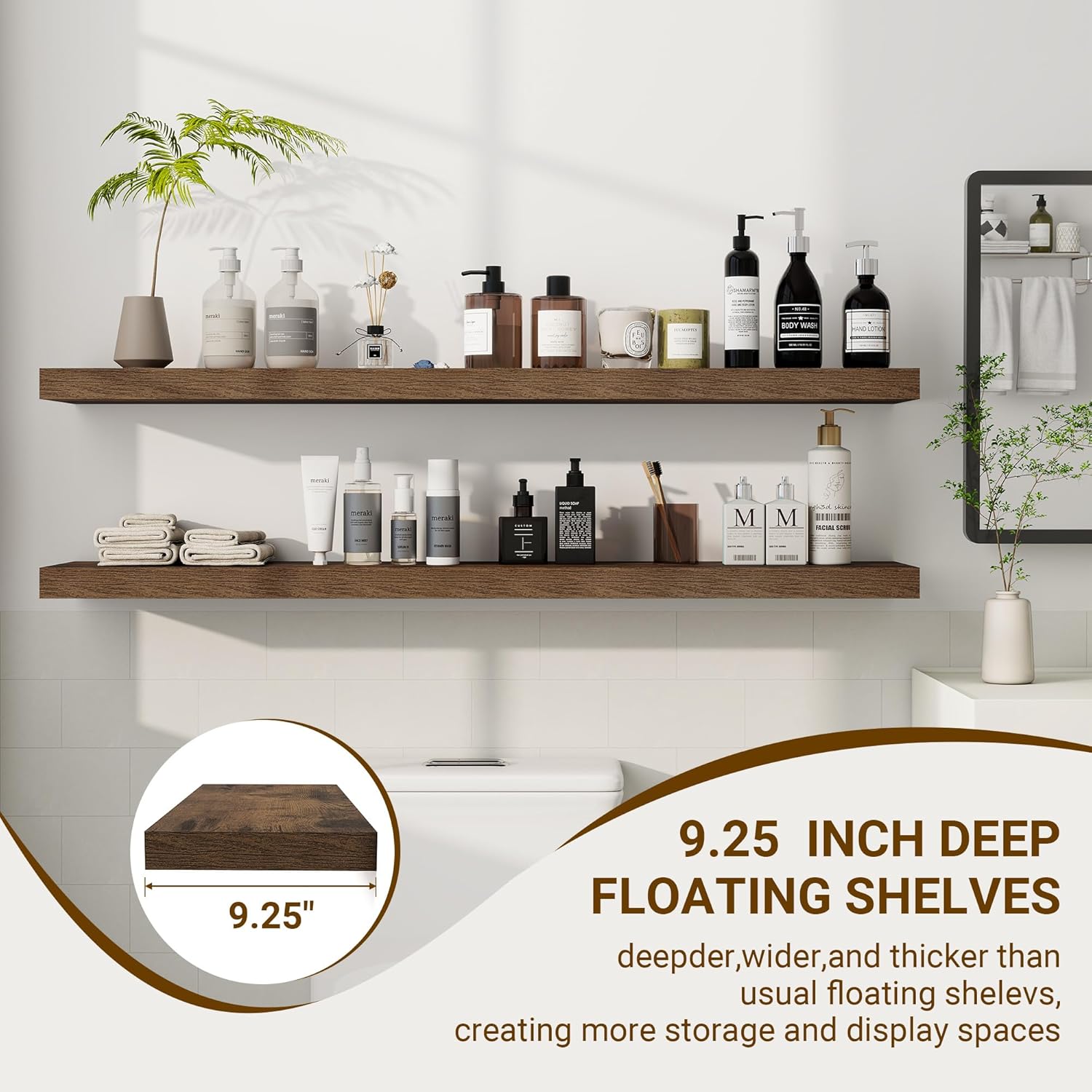 48 Inch Floating Shelves, 48"x9.25"x1.5" Inch Deep Floating Shelves for Wall, Wooden Shelves for Bathroom, Bedroom, Living Room, Brown