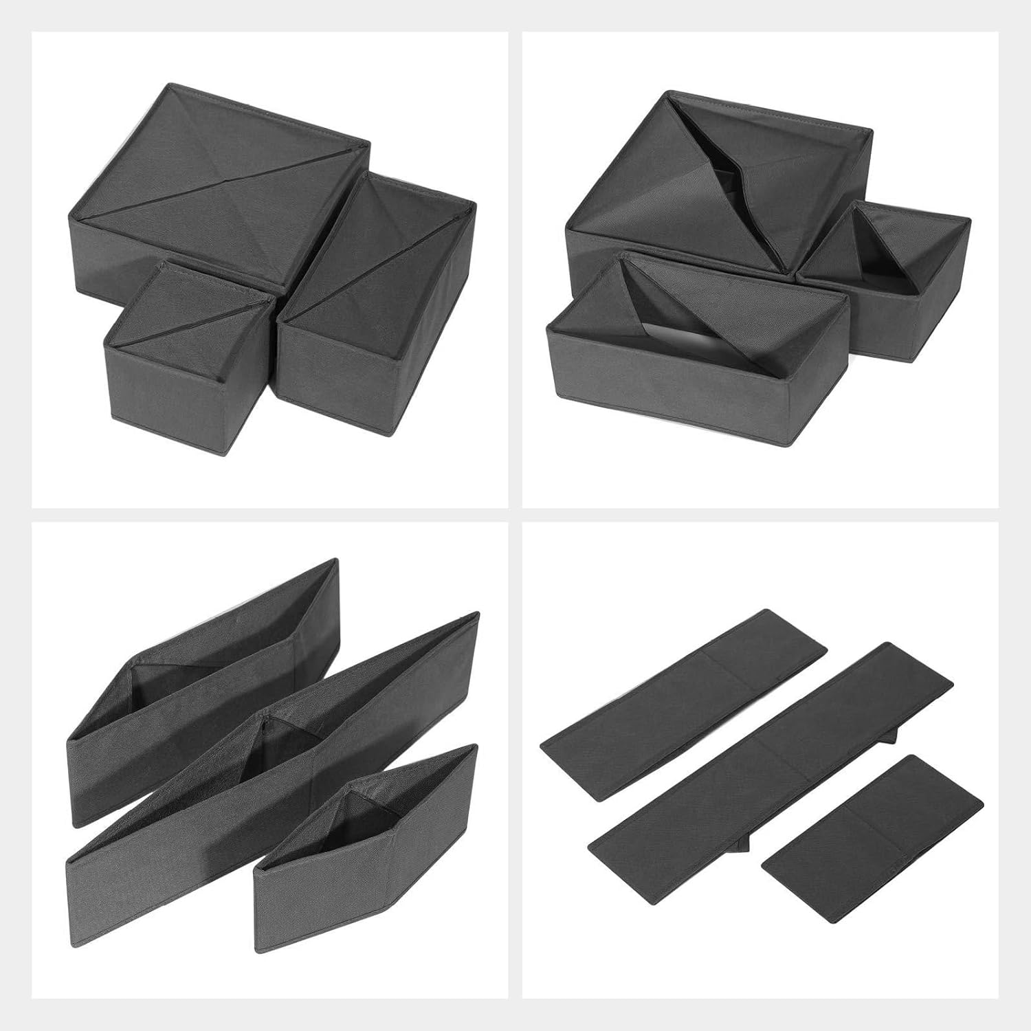 - ćQUALITY MATERIALćThis fabric dresser drawer divider organizer is made with non-woven fabric,which is soft,breathable,easy clean,durable and not easy to bend,deform and tear.These foldable clothes organizer are stackable to take advantage of the space.