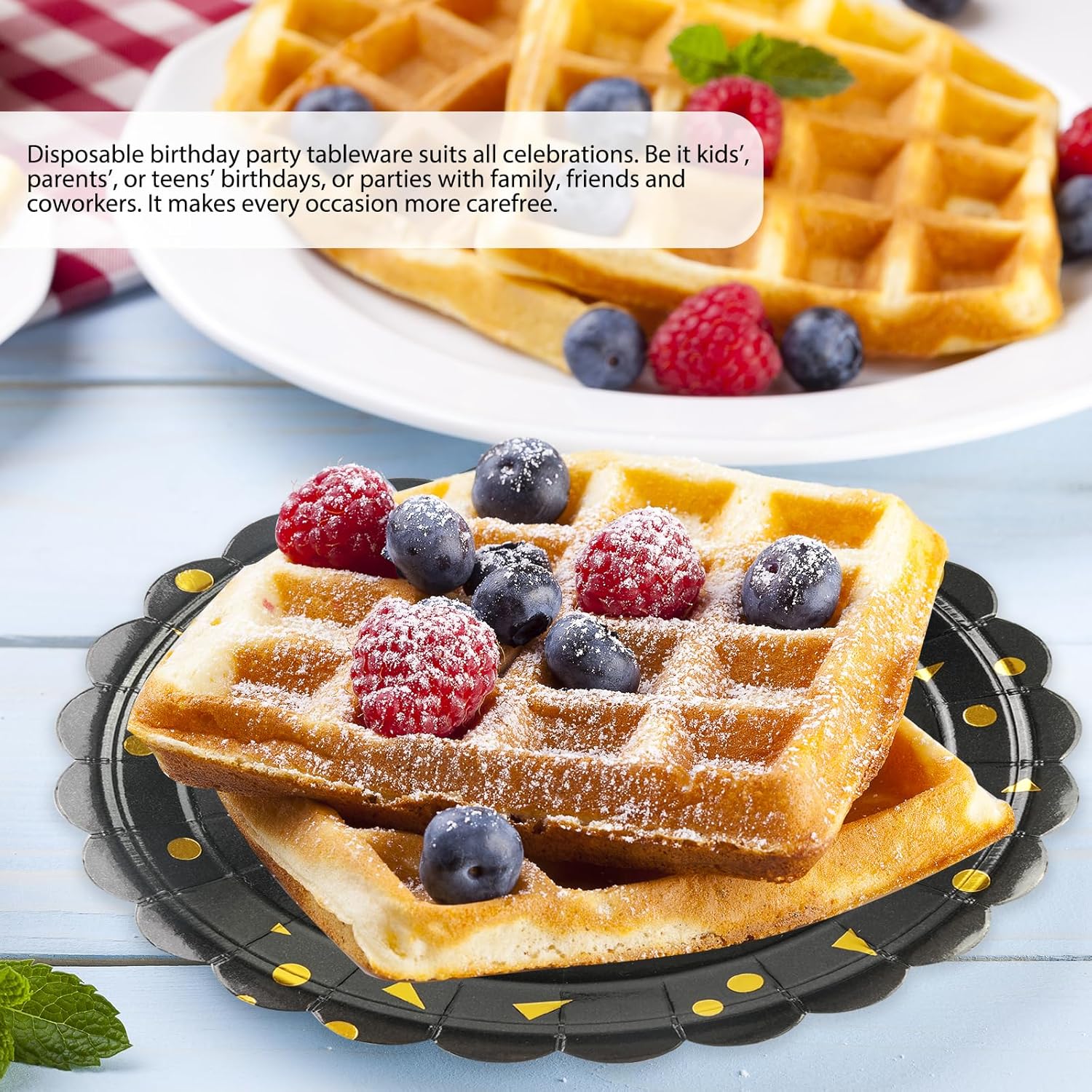 - 【BIRTHDAY PARTY SUPPLIES】:You will receive 50pcs 7inch black and gold happy birthday plates. Excellent for serving salads, desserts, cakes, etc. Enough to meet your party needs, perfect for your birthday party tableware. Serves up to 50 guests.