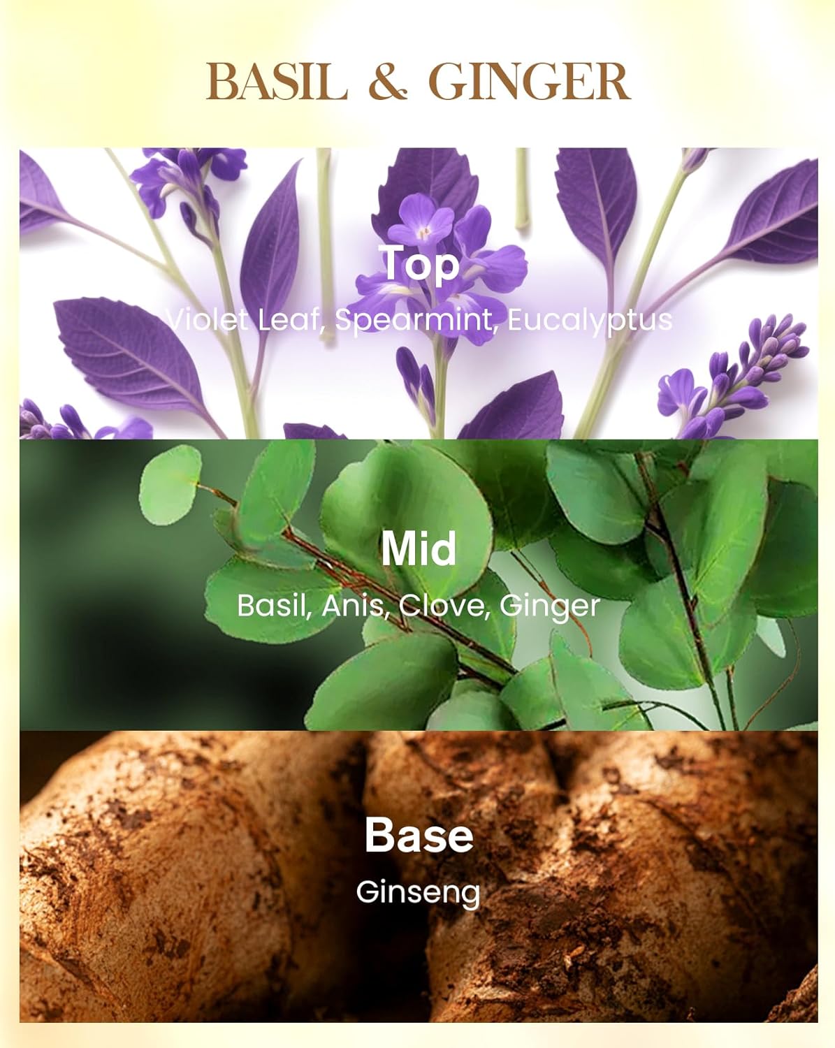 - Scent : basil, ginger
