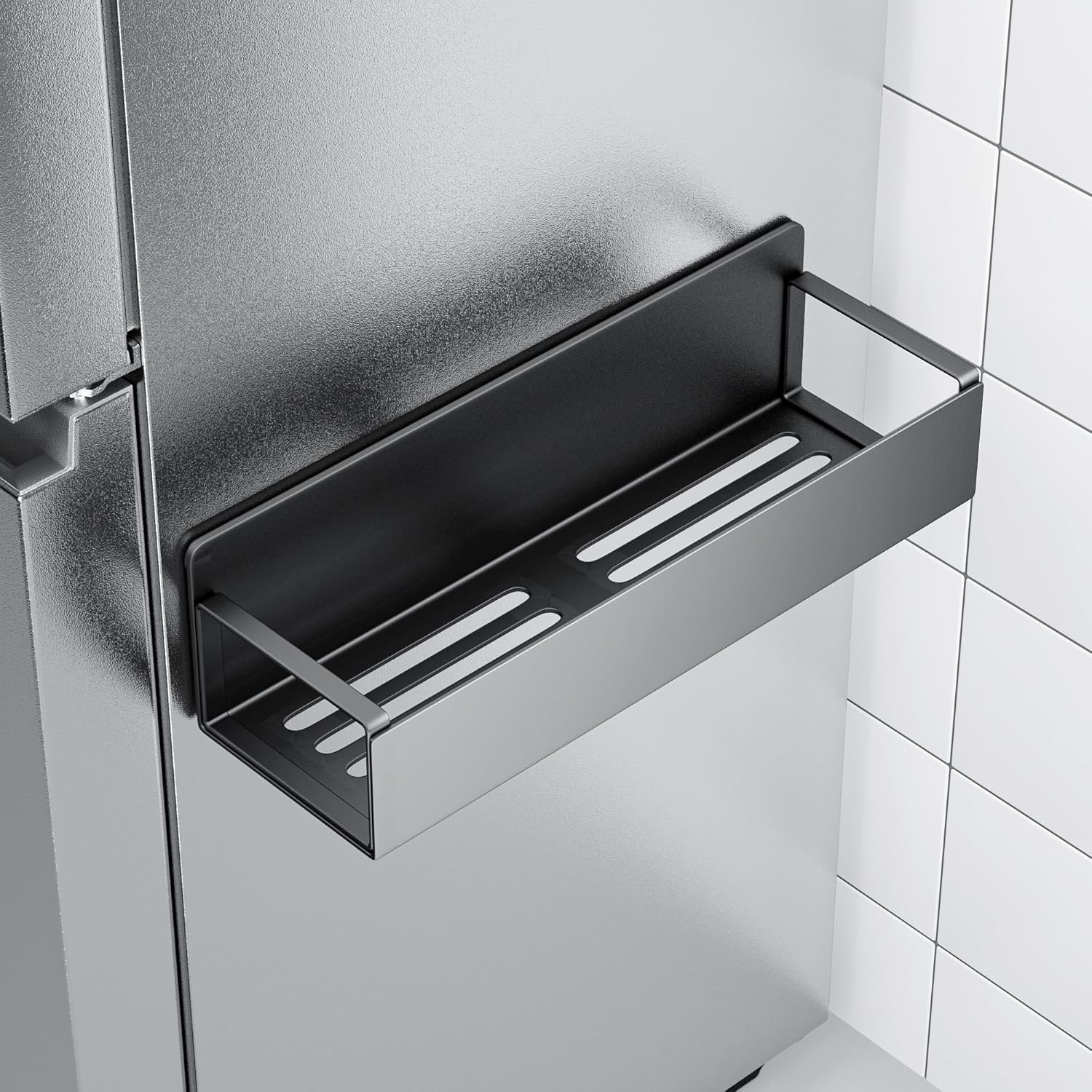 - THOUGHTFUL SAFETY DESIGN: The magnetic spice shelf features a raised 1.97-inch protective edge guard that effectively prevents items from falling off. The specially designed ventilated bottom ensures proper airflow and quick drying of containers.