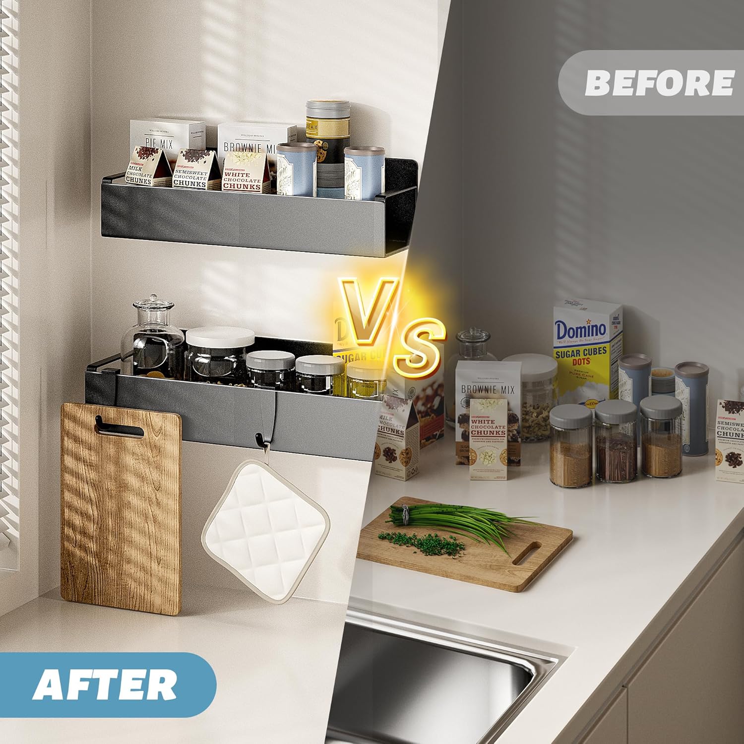 - POWERFUL MAGNETIC SYSTEM: Equipped with heavy-duty magnets that provide exceptional holding power, supporting up to 10 pounds of weight while maintaining a secure grip on any metal surface, offering convenient access to your spices.