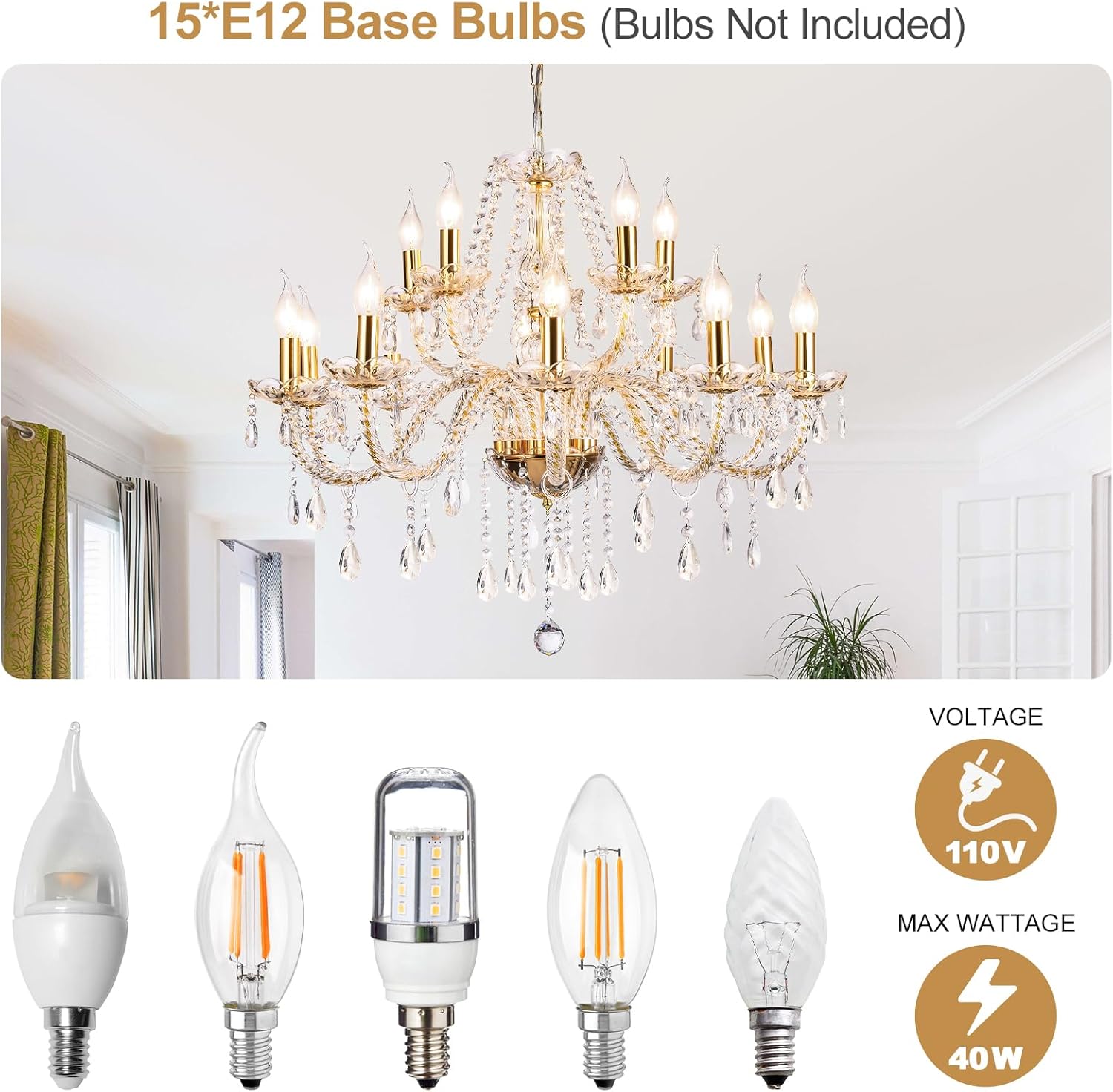 - 15 Bulbs Required.(Bulbs not included)