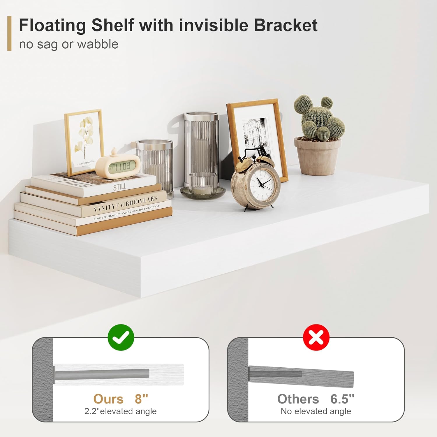 - 12 Inches Deep Floating Shelves :This extra deeper and thicker wall shelves are 48"L x 12"D x 2" H,with a capacity of 75Lbs. Our shelves for wall decor create a variety of storage spaces to organize small items on your desktop or counter.and they blend seamlessly with the rest of other decor and provide a stylish way to organize and display items.