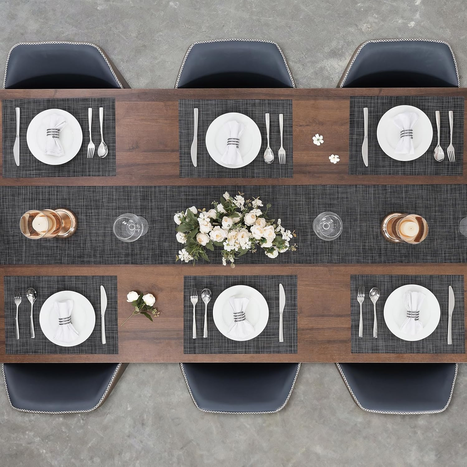 Myir JUN Placemats Set of 6, Vinyl Woven Placemats Place Mats Indoor Washable Table Mats Non-Slip Place mats for Dining Table (Dark Gray-Black, Set of 6)
