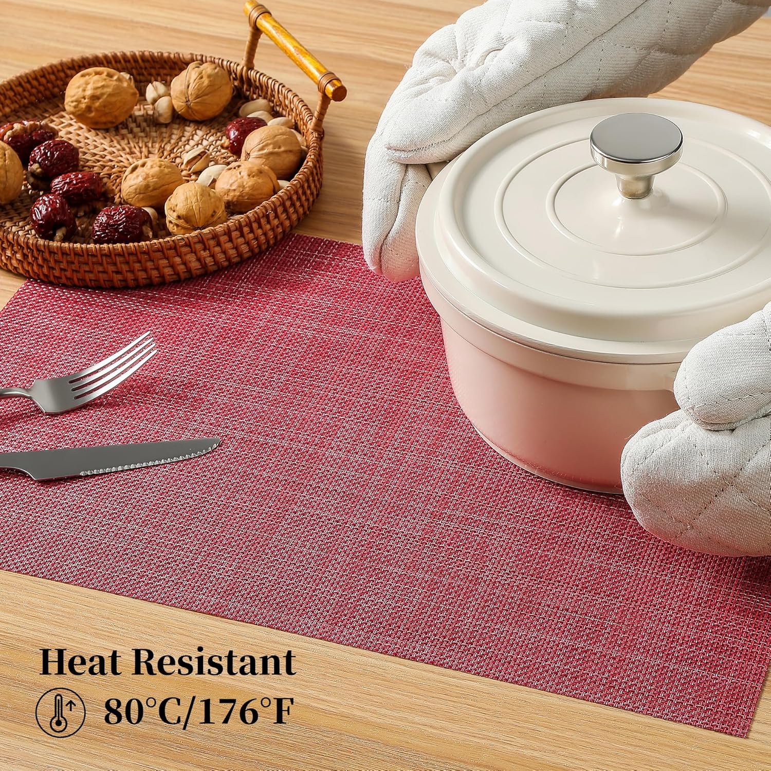 Leetaltree Red Placemats Set of 12 - Heat Resistant Non-Slip Place mats for Dining Table, Washable Durable PVC Vinyl Woven Table Mats(Red, 12)