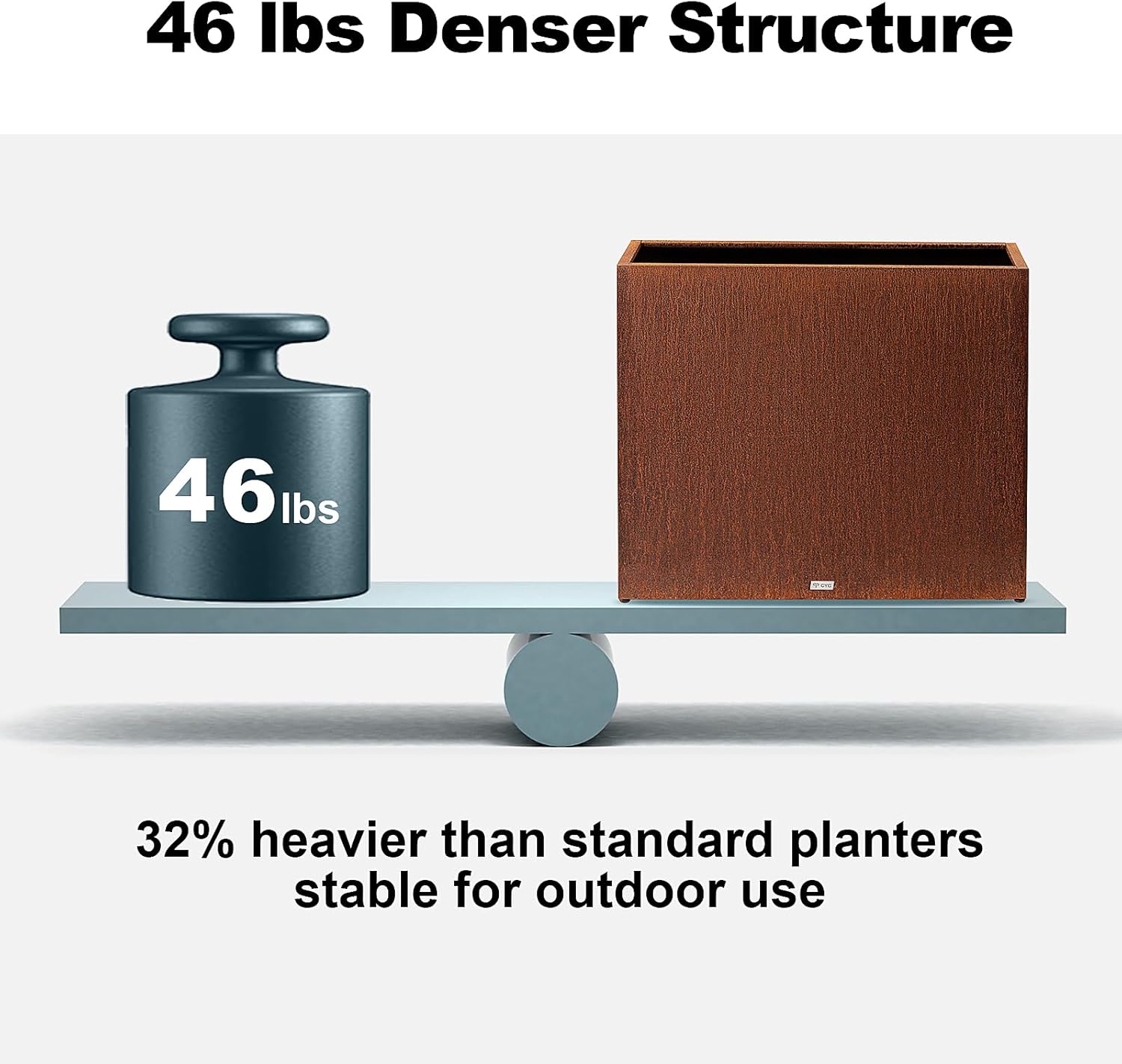 - Anti-Tipping Stability: Our corten steel planter comes with a grow bag for clean and convenient planting and water bags to enhance stability and can withstand a maximum tilting force of 30bf
