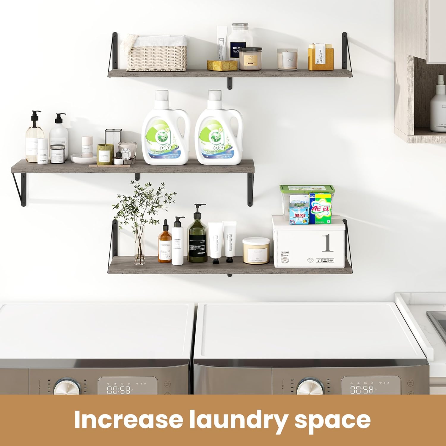 Heimlove 36 Inch Floating Bookshelves Set of 3,Wall Bookshelf Heavy Duty Wall Mounted Bookshelves for Living Room,Bedroom,Kitchen,Laundry Room Storage & Decor,Silver Grey