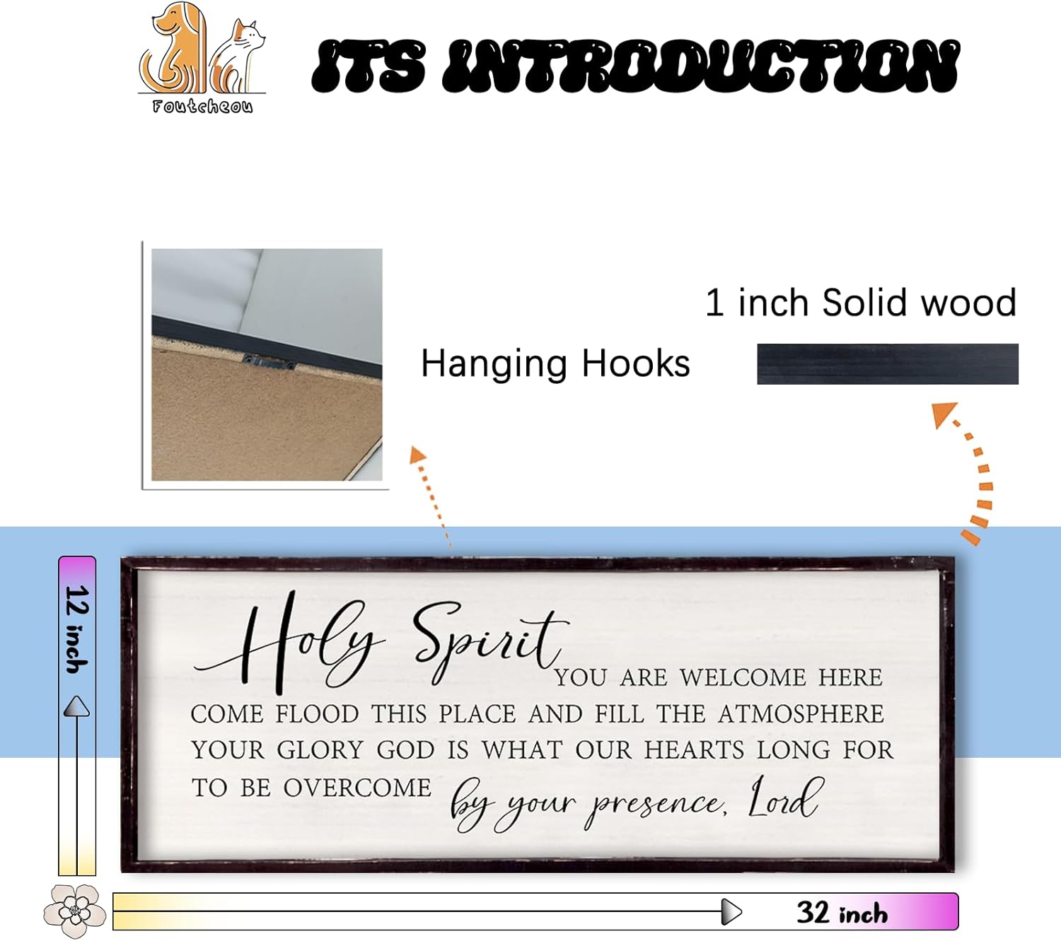 Holy Spirit You are Welcome Here Wall Decor 32"×12" Quote Bible Verse Religious Christian Scripture Wall Art Sign (Black)