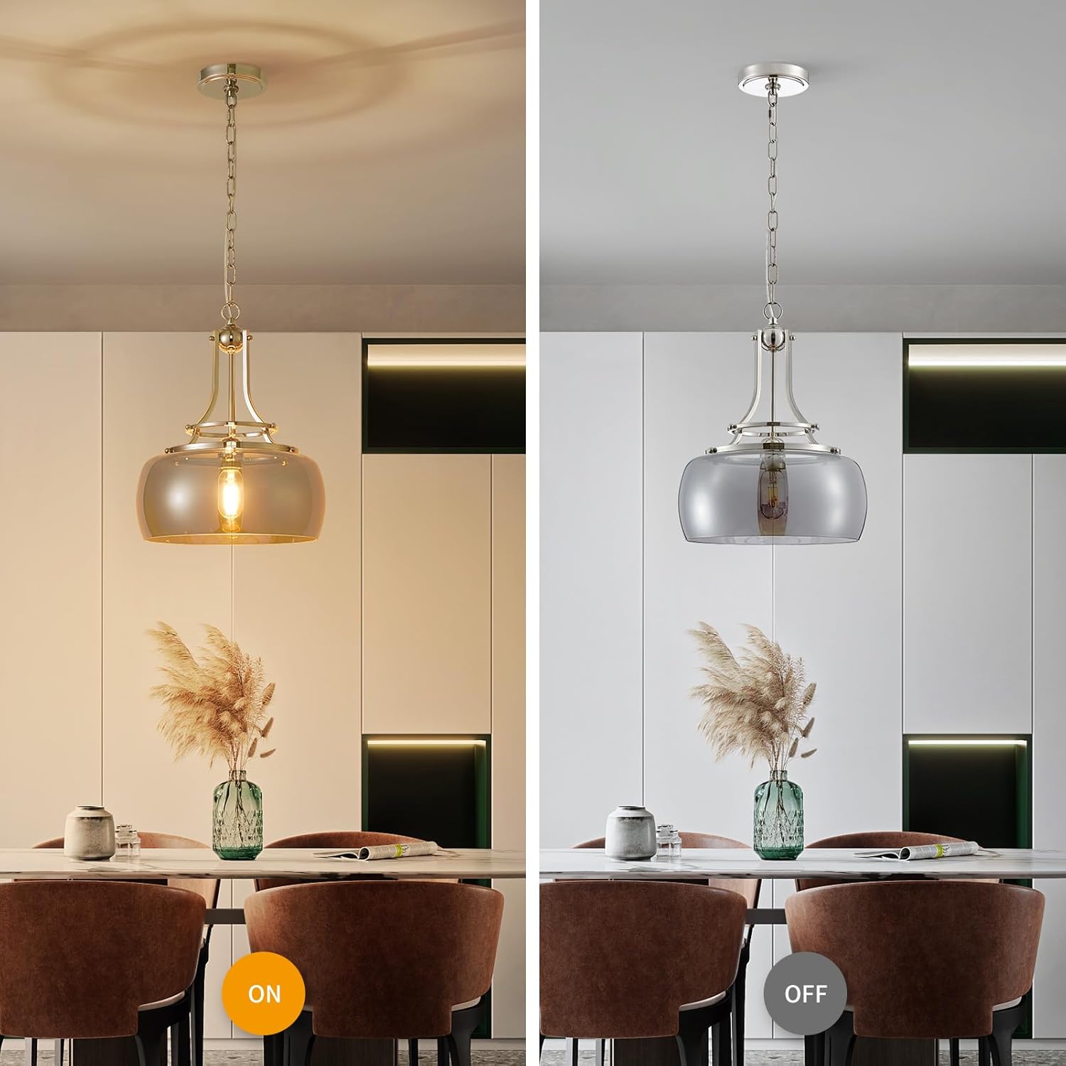 WUZUPS Nickel Chandelier Rustic Farmhouse Industrial Round Ceiling Pendant LED Light Fixture with Electroplated Gray Glass Shade for Dining Room Kitchen Island Foyer Entryway, H 17" W 13.4", E26 Base