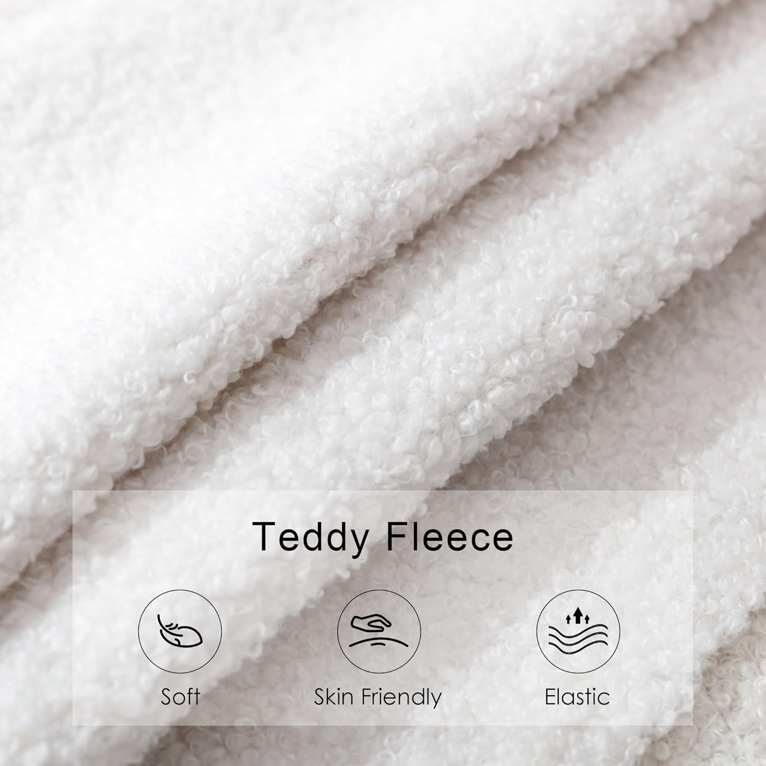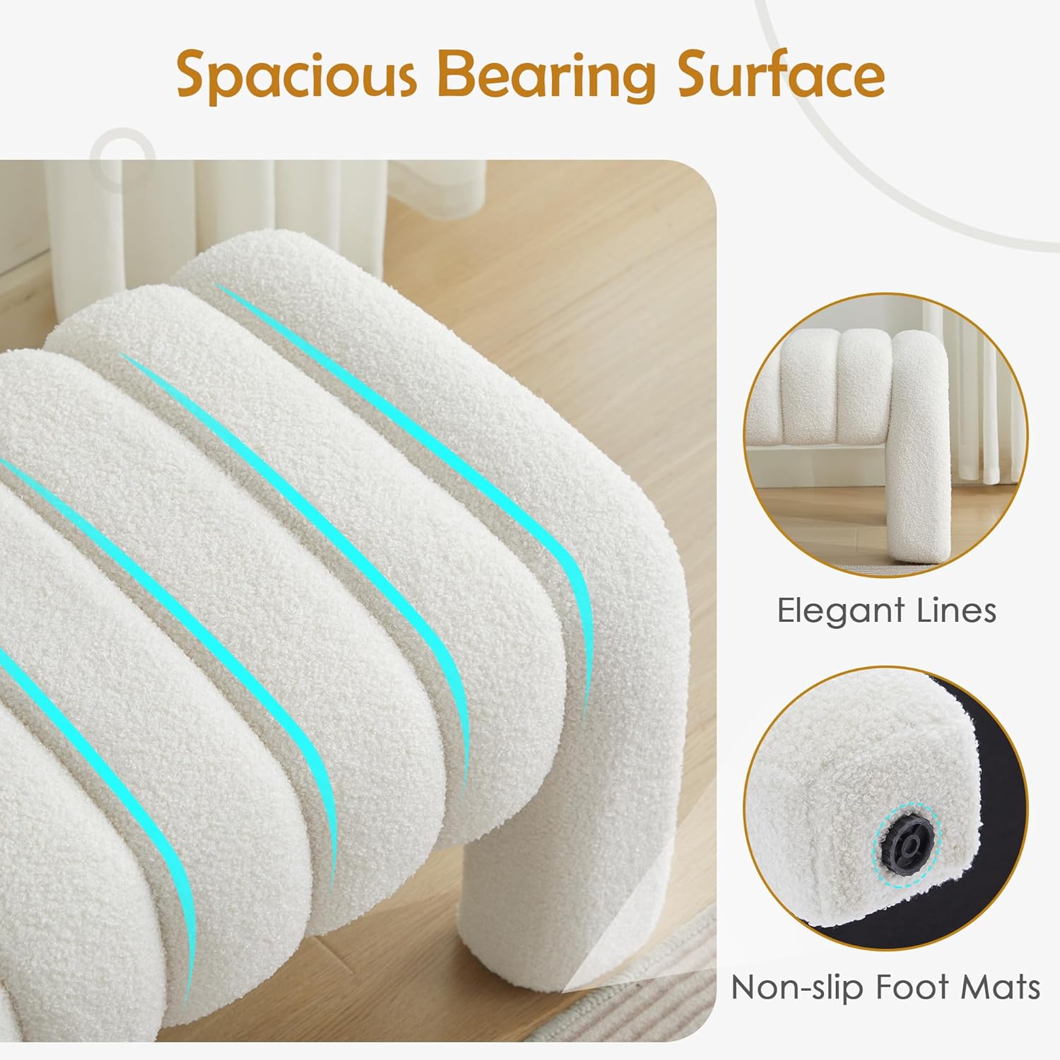 43.3" Bedroom Bench, Upholstered Entryway Bench, Modern End of Bed Ottoman with Solid Wood Legs and Adjustable Foot Pegs for Entryway, Dining Room and Living Room (White Teddy)