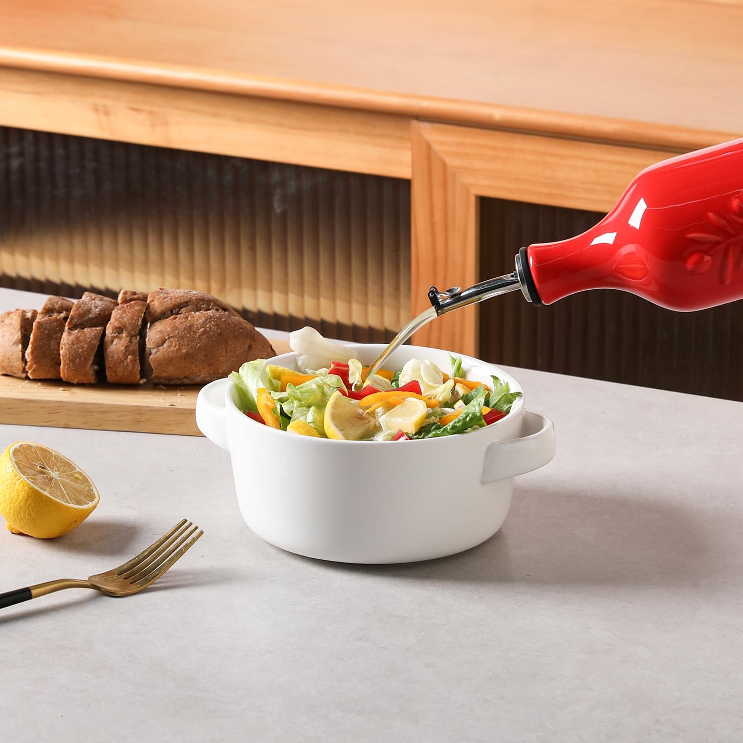 Sweejar Large Olive Oil Dispenser Bottle with Spout, 24 Oz Ceramic Oil Dispenser for Kitchen, Relief Opaque Cruet, Container for Cooking, EVOO, Vinegar, Pack of 1 (Red)
