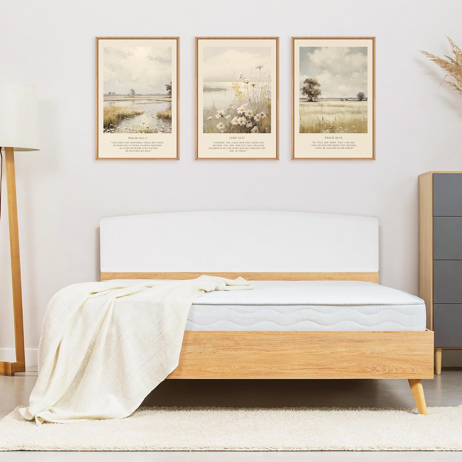 - 【Decoration for Many Scenes】This Blessed Modern Scripture Floral framed canvas wall art set is easy to mix and match different home styles to create a art vibe into any space, like bedroom, living room,Prayer Room, Christian Schools,or any other occasion.Hang it on the wall, break the boring empty wall, and add some art to your home.